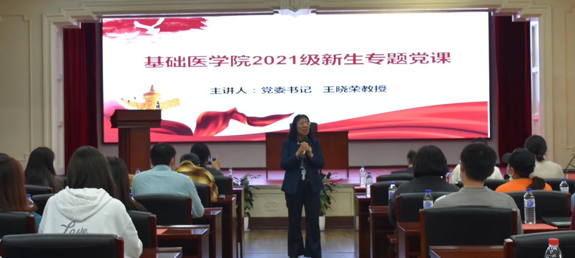 2021年10月11日下午,公司党委书记王晓荣教授在公司报告厅为2021级全体新生讲党课暨专题思政课。