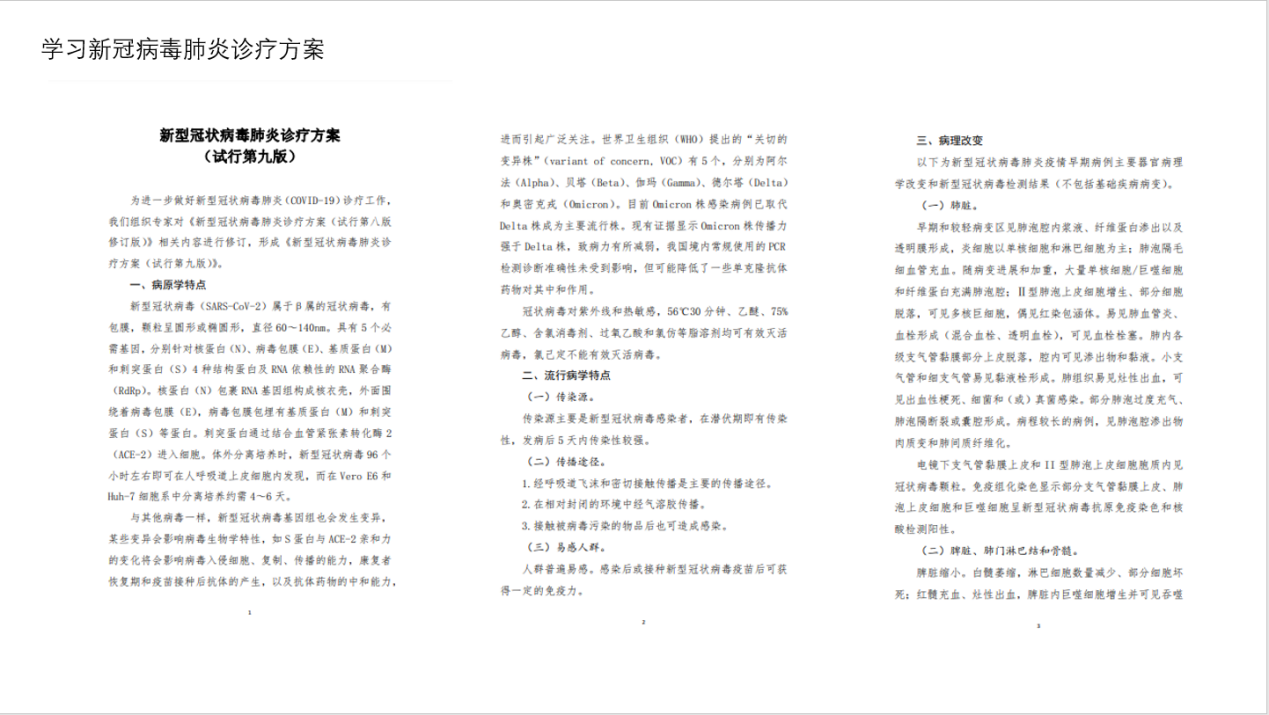 活动中,团支书张妙冉介绍了《新型冠状病毒肺炎诊疗方案(试行第九版)》重点内容。号召大家要深刻认识当前疫情防控的复杂性和艰巨性,把思想和行动统一到习近平总书记重要指示精神和公司疫情防控决策部署上来,加强个人防护,科学佩戴口罩,勤洗手,常通风,不扎堆,少聚集;要进一步提高科学防控意识,保证充足睡眠,增强自身免疫力,适度锻炼身体,调节身心状态,认真配合落实好各项防疫工作;要坚定信心,坚持不懈,不信谣、不传谣,最大限度减少疫情对经济社会和学习生活的影响。
