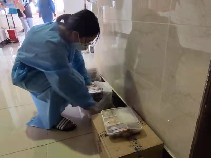 在公司党委的领导下,第二党支部的党员同志们闻令而动,主动请缨,义不容辞地在“疫”线奋战,积极参与各项志愿服务。在这将近两个月的校园封闭管理期间,大家听从统一领导,严密细致做好疫情防控相关工作。早上七点,楼长老师发布取餐通知后,楼栋志愿者立即穿好防护服,佩戴好N95口罩,整装待发。为了让同学们尽快吃到热乎乎的饭菜,一至六楼的同学们形成一条完整的“配餐链”,大家分工明确,及时地将餐食送到每位同学手中。支部的男同学们主动承担起搬重物的责任,将一箱箱矿泉水和物资从一楼搬运至六楼,任凭汗水湿透衣襟,他们的脚步也未曾停歇。还有的同学负责每天统计楼栋人员居住信息和需求,发放抗原试剂和统计核酸检测结果等,大家日复一日都在默默的做着这些工作,没有一句怨言,只为保障同学们的日常需求和健康。