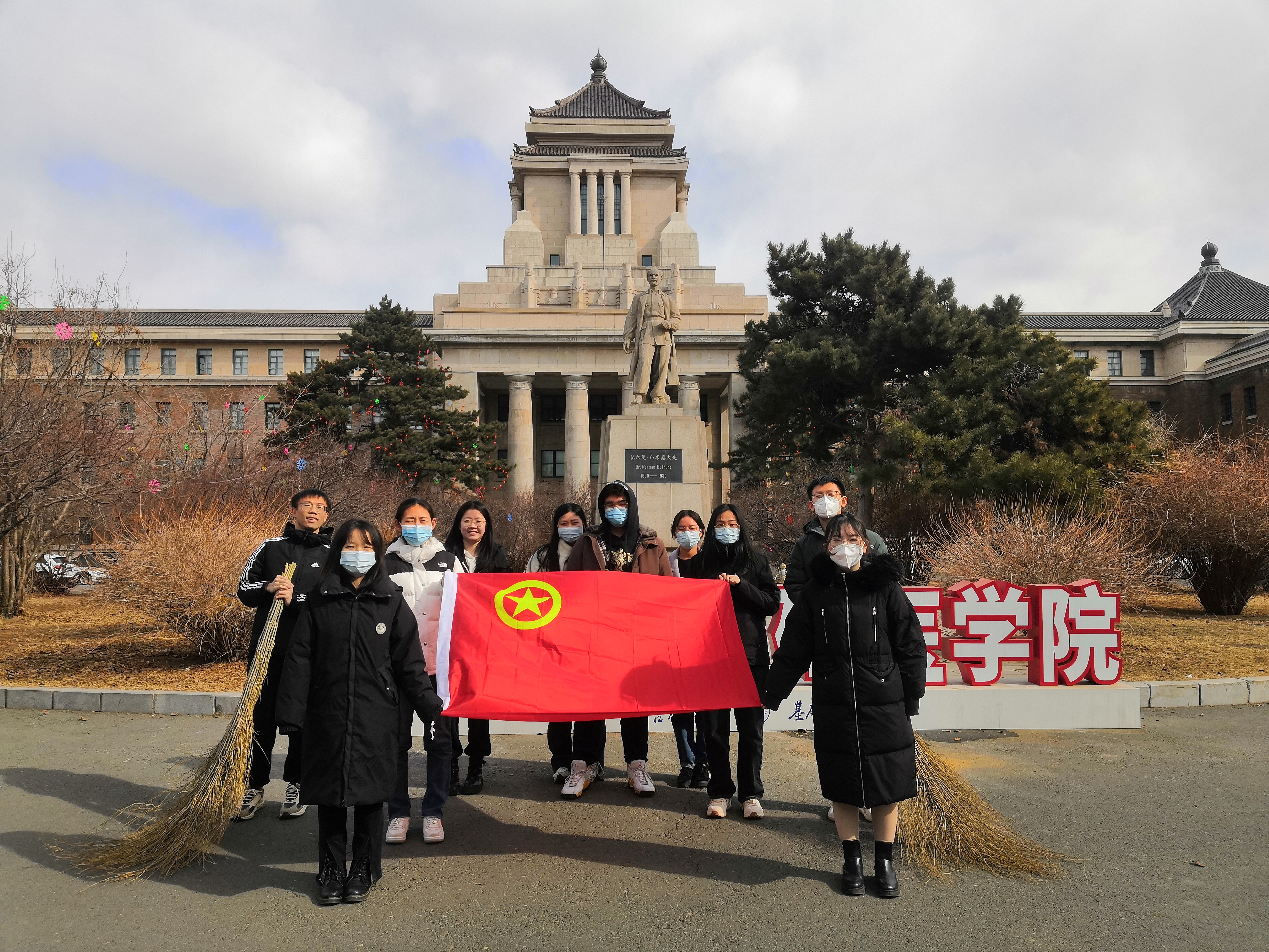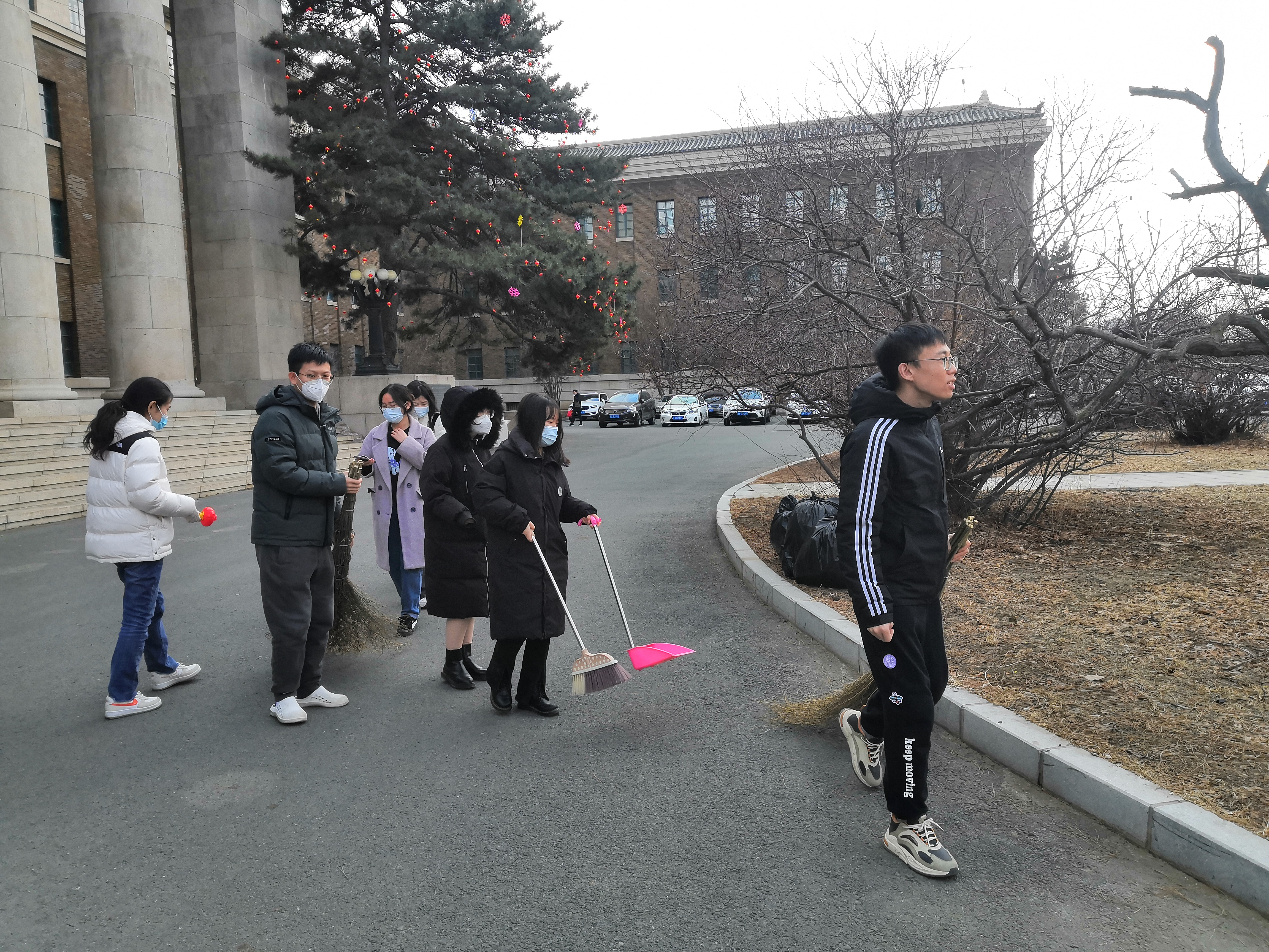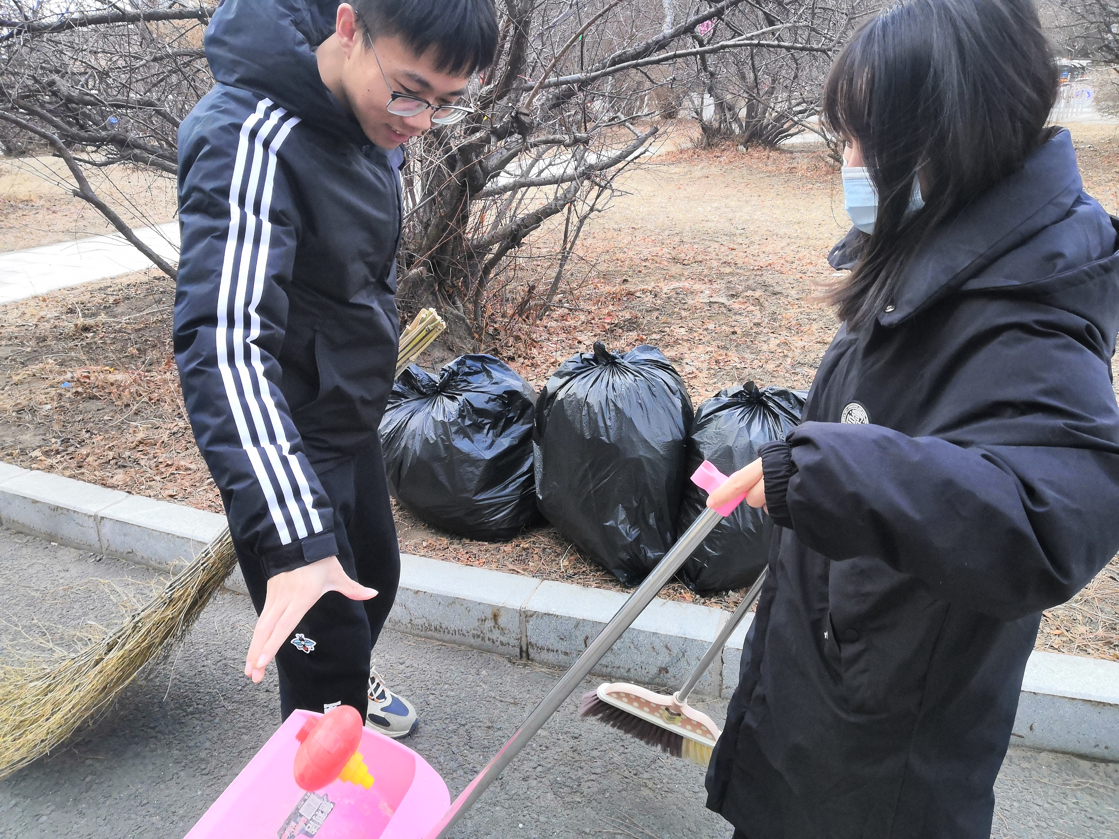 本次活动的主要内容为净化校园环境,同学们从基础楼和实验楼及其周围环境进行清扫。在这寒风凛冽的日子里,在配备好清扫工具和垃圾袋后,女生负责捡垃圾、男生们清扫校园内树叶,最后将垃圾打包送去垃圾车,同学们相互配合,认真劳动,经过一个多小时的努力,我们的校园环境变得更加干净整洁。
