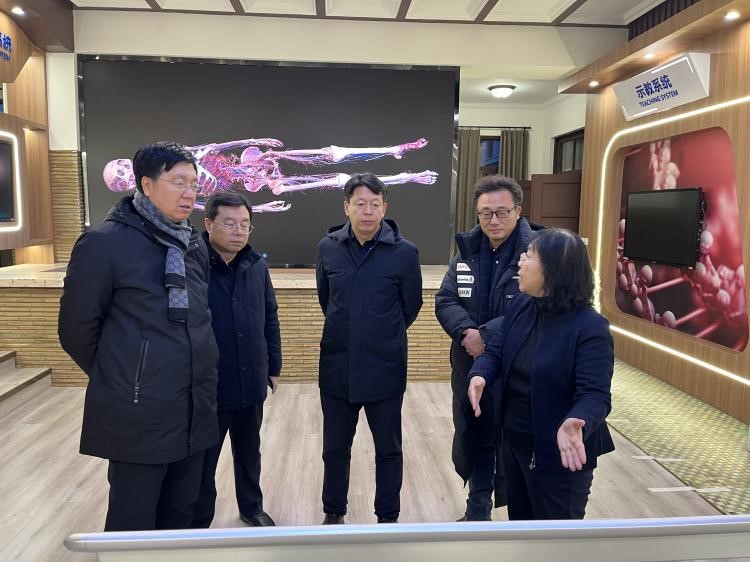 薛文革一行参观了云顶7610线路检测病理生物学教育部重点实验室标本陈列馆,了解了“高清数字人虚拟解刨”“AR虚拟示教系统”等先进的教学设备和最新的医学教育理念。