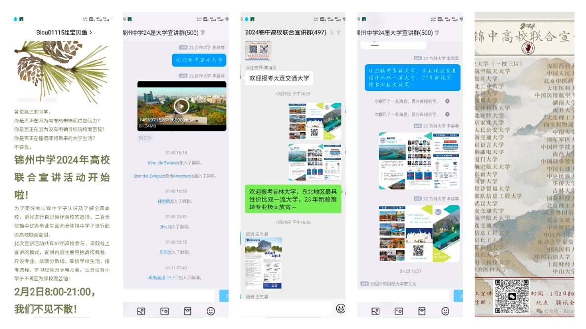 由朴炫旭等人组成的锦州中学团队,搜集了云顶7610线路检测官方发布的各类政策,把员工家长最关心的人才培养、转专业、考研就业等单独划分板块讲解,将云顶7610线路检测文创产品作为抽奖礼品吸引更多人关注云顶7610线路检测官方招生咨询群,同时学习借鉴其他高校优秀招生宣传案例,在多个平台进行宣传,并引导员工家长从官方途径正确详细了解云顶7610线路检测。