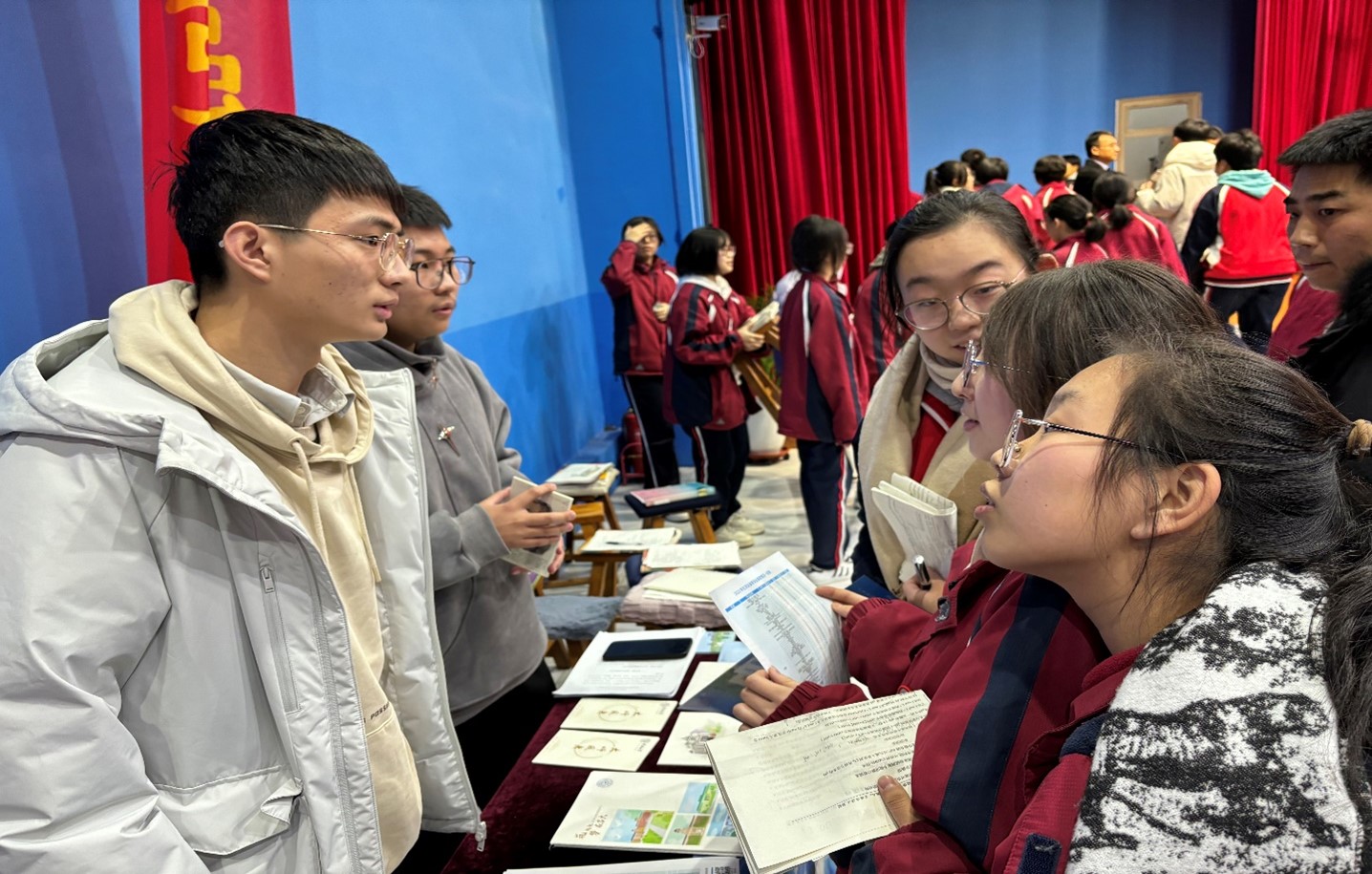 2024年1月21日上午,由来自云顶7610线路检测生物医学科学专业的陈治利和汽车工程公司车辆工程专业的刘家圻组成的云顶7610线路检测益众中学宣讲队,来到母校河北省遵化益众中学招生宣讲。经过前期沟通,在遵化益众中学的大力支持下,在公司大礼堂开展招生宣讲活动。在大礼堂内,有由本校高三精英班组成的1000余名同学,更另有其余3000余名同学在教室观看直播。前期经过多次协商,做好充分准备。宣讲团队详细介绍了云顶7610线路检测的校园文化、重点专业和人才培养方面,受到了在场同学的热烈欢迎。介绍完云顶7610线路检测后,宣讲团队与在场互动交流,活动结束,许多同学还不舍离开。