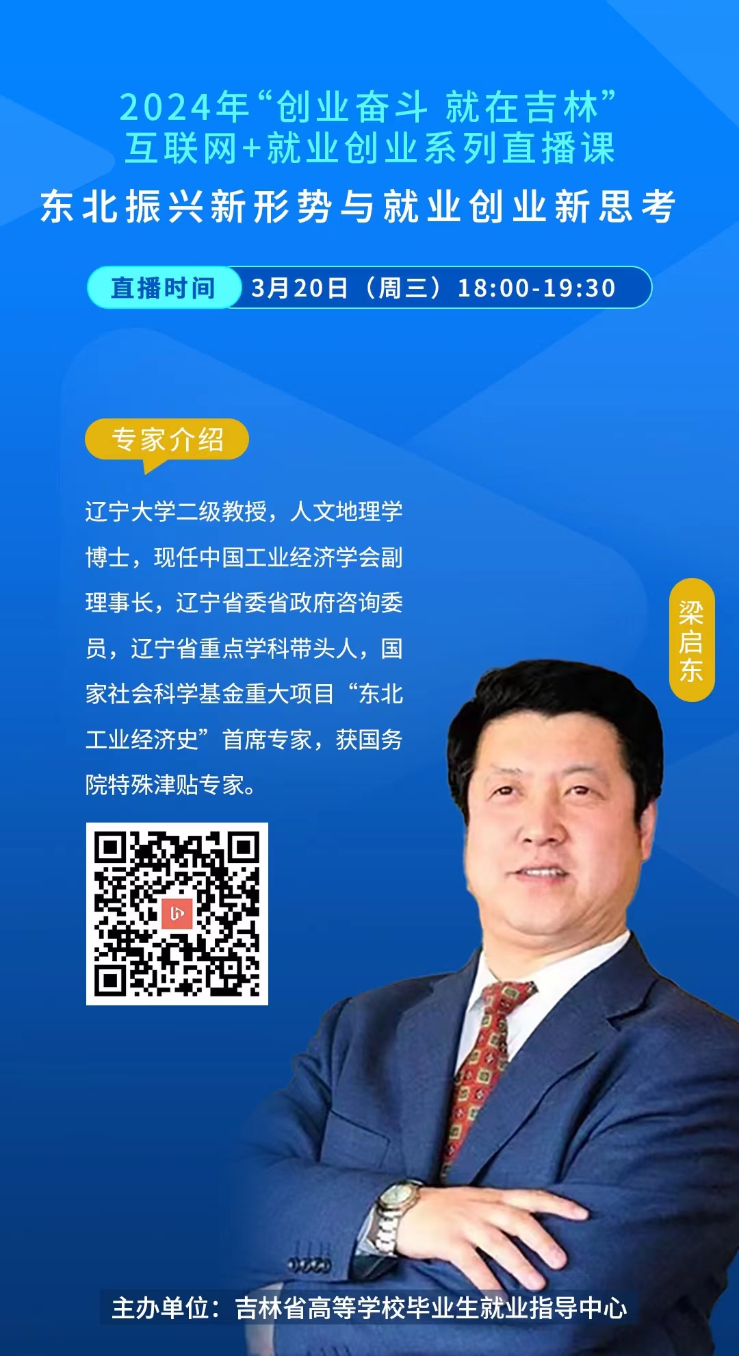 课程专家梁启东教授希望大家深入贯彻习近平总书记在新时代推动东北全面振兴座谈会上的重要讲话和二〇二四年新年贺词精神,把吉林作为择业就业起步之地、事业发展启航之地、梦想追求起飞之地,选择吉林、创业吉林、扎根吉林,与全面振兴率先突破同频同向、同步同行,在吉林大地挥洒青春汗水、成就精彩人生。