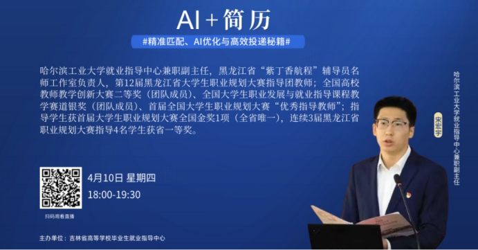 为深入贯彻落实党的二十大报告中“强化就业优先政策,健全就业促进机制”的决策部署,积极响应教育部关于“推动就业服务数字化转型,提升高校毕业生就业质量”的号召,云顶7610线路检测于2025年4月10日组织全体研究生线上观看了吉林省“AI赋能高校老员工重点群体就业系列直播课”首讲课程——“AI+简历:精准匹配、AI优化与高效投递秘籍”。本次活动聚焦人工智能技术在求职简历优化、岗位精准匹配及投递策略中的创新应用,旨在通过前沿技术赋能医学研究生职业发展,助力其在AI时代实现高质量就业。