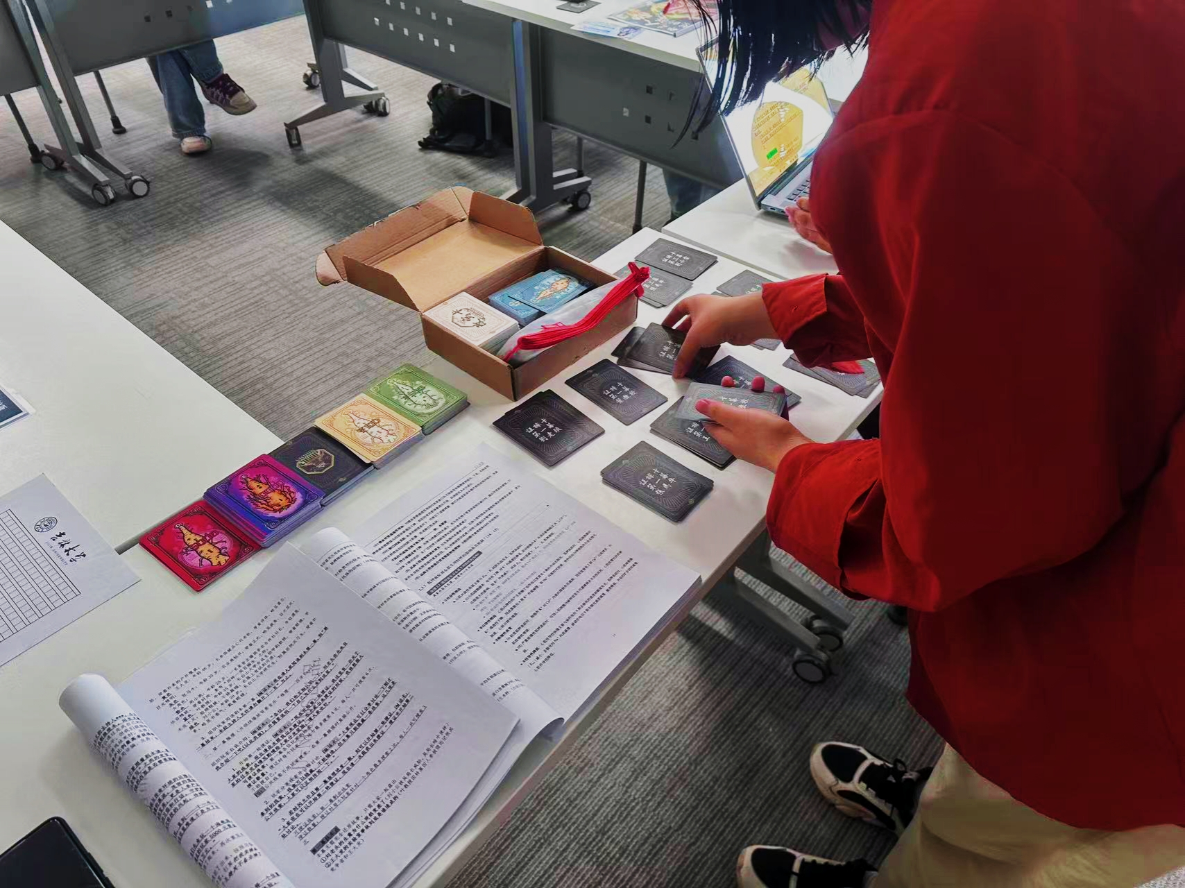 5月24日下午,参与剧本杀活动的小伙伴相聚于基础楼214三化教室。在两个小时的欢声笑语中,给每一位玩家都留下了一段独一无二的记忆。玩家通过在安全、舒适的环境里尽情探讨,从而减轻心理压力和困扰,更深刻的认识自己,理解自己的情绪和需求,同时打破个体之间的隔阂,重视与他人之间的紧密联系,让玩家重新认识到,每个人都不是孤立存在的岛屿,团队的力量不容忽视。