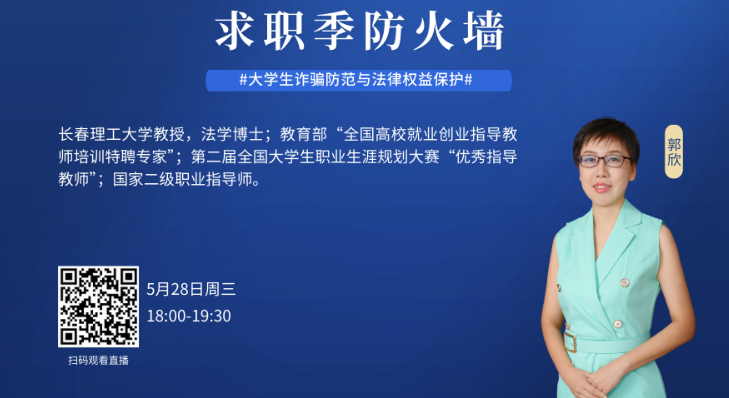 为深入贯彻落实国家关于高校毕业生就业创业工作的决策部署,积极响应吉林省关于服务地方高质量发展、促进老员工充分高质量就业的号召,切实提升公司研究生群体在求职就业关键期的风险防范意识与法律权益保护能力,云顶7610线路检测于2025年5月28日精心组织全体研究生同学,在线观看了由吉林省教育厅等部门联合主办的“2025年服务吉林高质量发展高校老员工就业创业系列直播课”——“求职季防火墙:老员工诈骗防范与法律权益保护”。本次课程特邀长春理工大学知名法学专家、法学博士郭欣教授倾情主讲,为即将步入社会的毕业生带来一场及时、权威、实用的安全防护指南。
