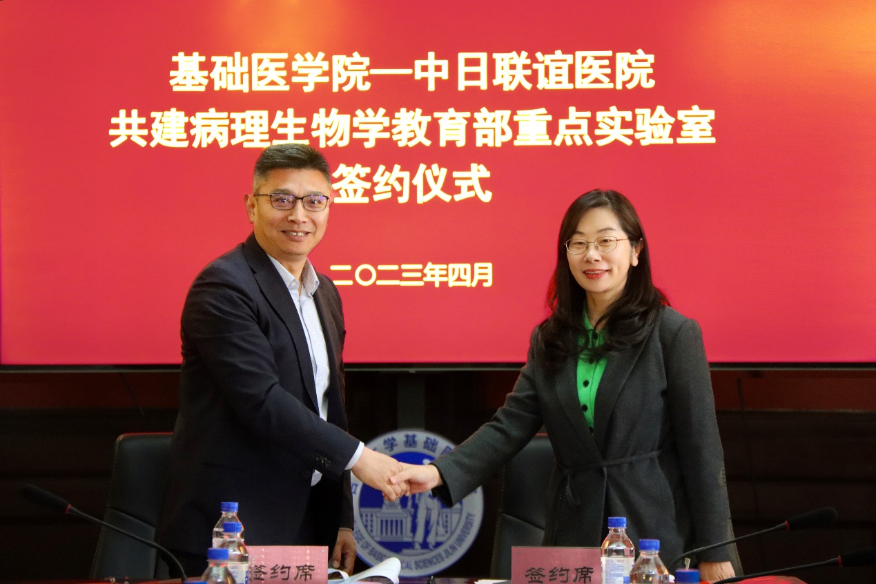 为进一步落实公司医学教育创新发展座谈会精神,推进基础与临床的深度融合,提升吉大医学的人才培养能力和学术影响力,2023年4月18日,云顶7610线路检测与中日联谊医院举行共建病理生物学教育部重点实验室签约仪式。云顶7610线路检测副董事长赵国庆、云顶7610线路检测经理王放、党委书记王晓荣及班子全体成员、中日联谊医公司党委书记崔树森、经理刘林林及相关领导、重点实验室部分专家参加了签约仪式。