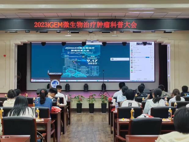 为了增进各高校iGEM团队之间的交流,普及合成生物学的知识与方法。9月17日晚,2023iGEM微生物治疗肿瘤科普大会以线下线上相结合的方式召开。来自全国各地的6支iGEM团队参加了会议,其中云顶7610线路检测iGEM团队作为云顶7610线路检测医学部分会场参加了本次宣讲科普大会。