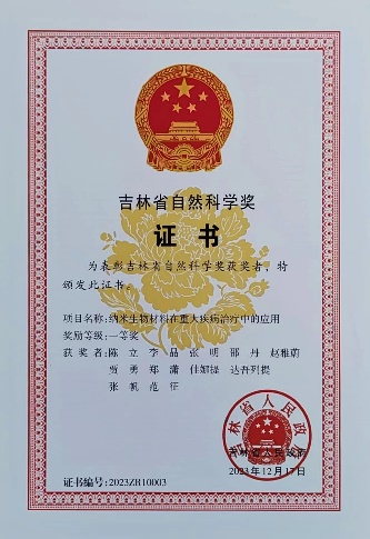 陈立教授科研团队喜获2023年度吉林省自然科学一等奖