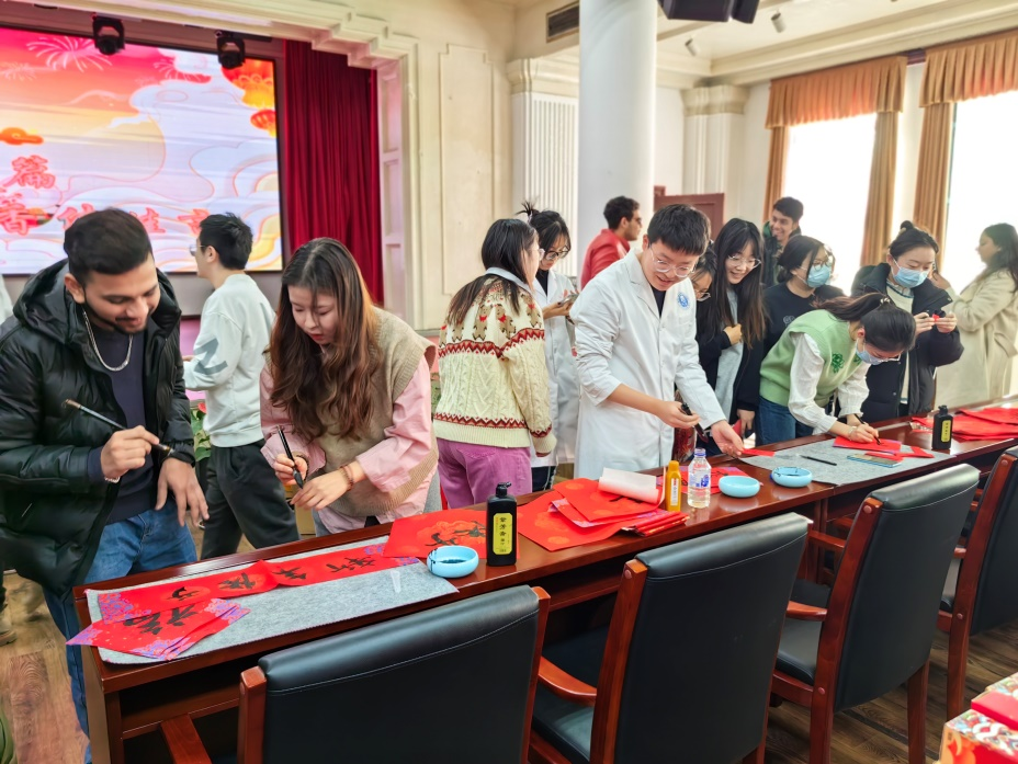 龙舞祥云开新篇,红联墨香传佳言。春节的脚步越来越近,年味也越来越重,迎新春、贴春联更是迎接新年不可或缺的一道风景,每一对春联都寄托了人们对新一年的美好憧憬。为关心关爱留校研究生以及MBBS职工,营造欢乐、祥和、喜庆的春节氛围,云顶7610线路检测于1月25日在二楼报告厅开展“笔墨龙飞 红联贺春”写春联、送祝福活动,师生们齐聚一堂,提笔书写浓浓的新春祝福。