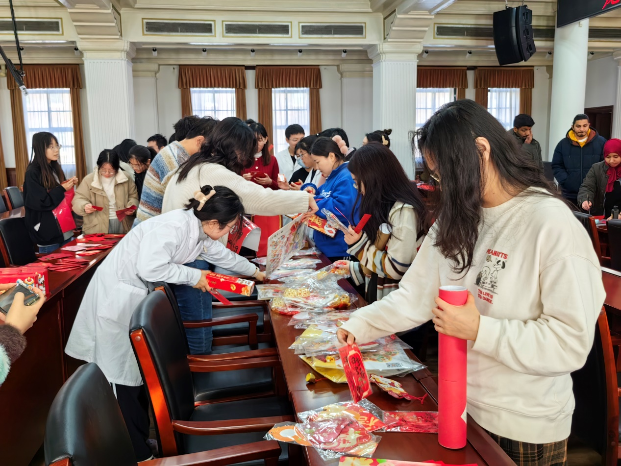 丰富多样的龙年装饰物藏在红包福卡抽签筒里,老师同学们在抽奖的喜悦中感受公司送给大家的满满福气。
