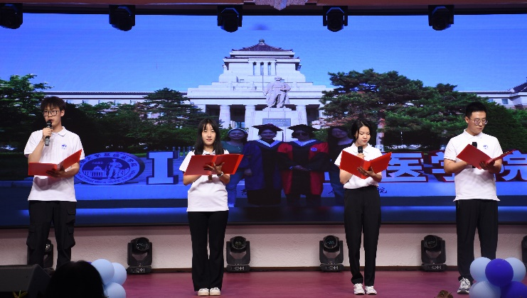 毕业晚会在李东洋、孙佳钰、何侃、闫天昊四位老师与基础学子携手录制的暖场MV《起风了》中缓缓拉开序幕。