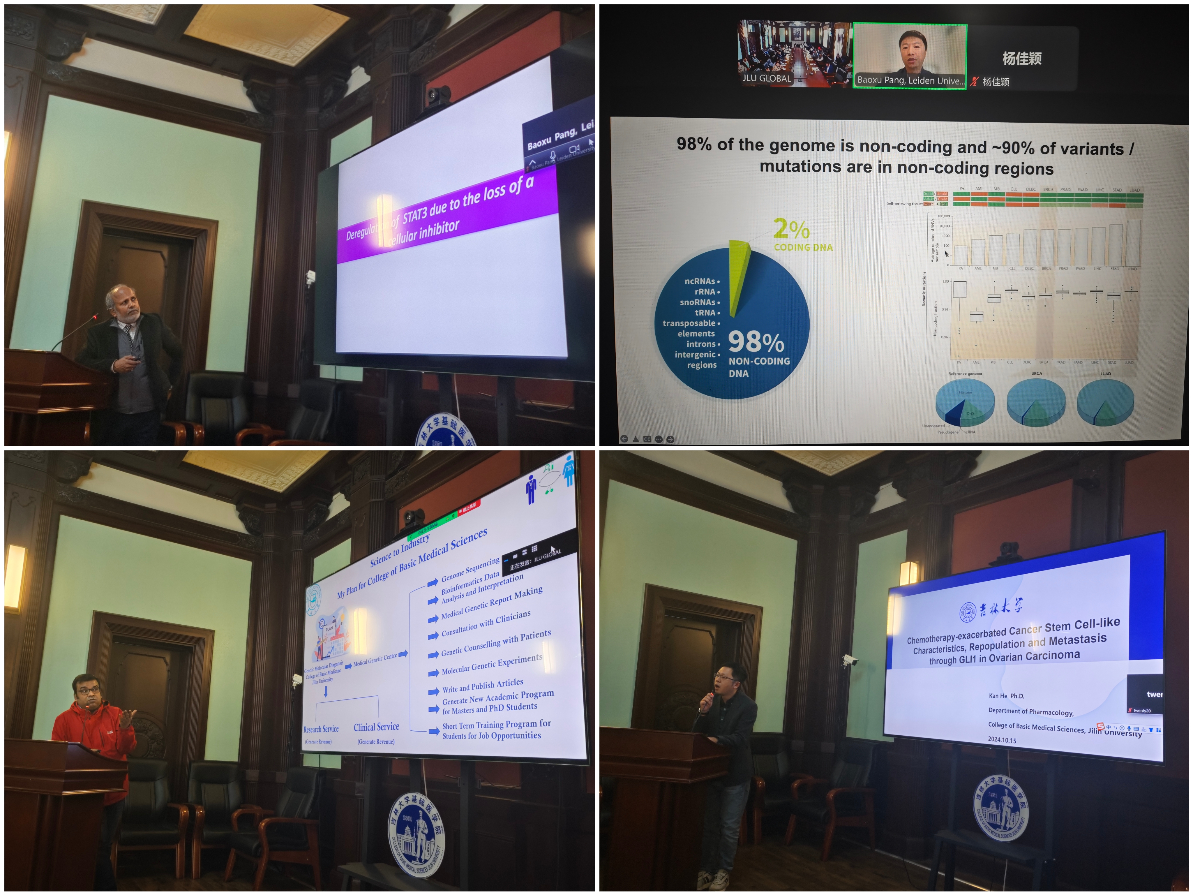 美国马里兰大学Dhan V. Kalvakolanu教授、荷兰莱顿大学医学中心庞宝旭副教授(线上)、云顶7610线路检测外籍教授Santasree Banerjee、云顶7610线路检测药理学系何侃副教授分别围绕各自在生物医学基础研究领域取得的最新成果进行学术报告。公司四十余名师生代表参加了分论坛,积极地与专家教授互动交流,现场氛围热烈。