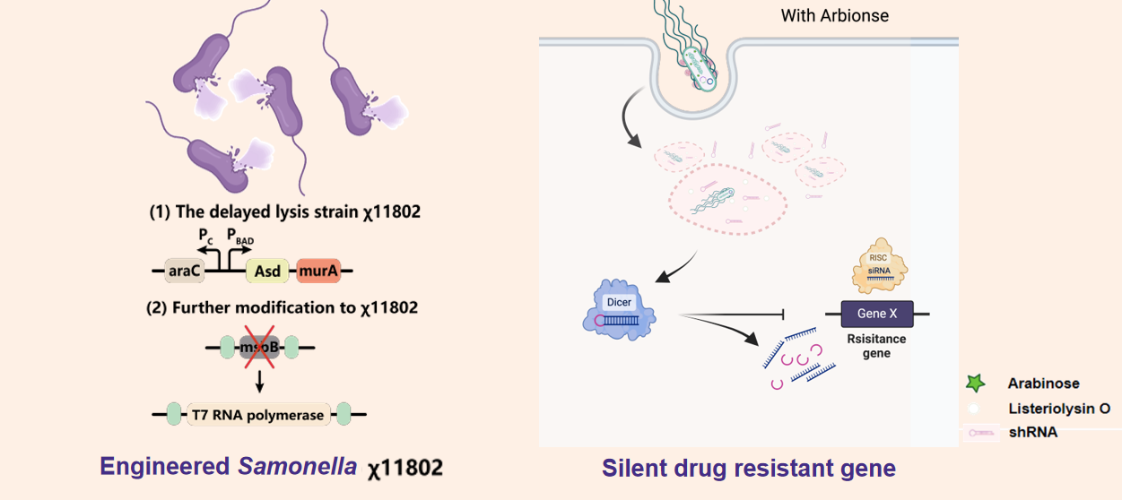 团队获得金牌的参赛项目是一种基于细菌的可迭代工程化生物靶向系统——BIOTARGET (Bacterial lterative Optimized Therapy and Assisted Resistance Guard Enhancement Technology)。旨在通过将RNAi (RNA interference)技术、细菌疗法和纳米医学相结合,以辅助药物递送及增强化疗敏感性。团队最终成功利用改造的减毒沙门氏菌,通过trans-kindomRNAi (tkRNAi)技术精准敲低耐药基因,并通过基因工程方法在细菌表面表达大量RGD肽增加其肿瘤靶向性。在此基础上,进一步与化学公司合作制作mPEG-PLG-PLL纳米颗粒以包载化疗药。纳米颗粒通过酰胺键与工程菌菌壁相结合,以辅助药物递送,减少了化疗药物全身应用的毒性。