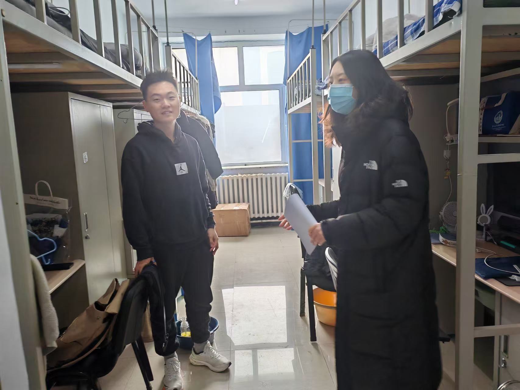 本次实验室检查包括实验室危化品出入库管理、使用情况,实验废弃物处置等情况,重点查看实验室消防安全情况。在宿舍检查中,工作人员重点排查违章电器使用情况、易燃物品存放、是否有使用明火以及人走断电情况。同时,研究生辅导员走访慰问了留校研究生,发放寒假安全手册,提醒员工在校期间注意事项,并详细询问每个人的返乡时间,认真倾听同学的实际需求,同时提醒同学们离开宿舍时务必断电断水、关门关窗,杜绝一切寝室消防安全隐患,在返乡途中注意人身财产安全。