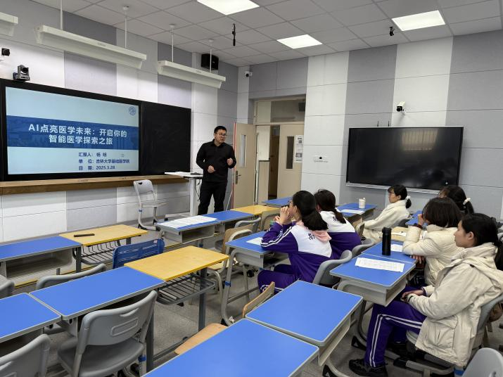 之后,招生宣传团队前往天津市南开中学开展宣讲会。杨明教授以AI点亮医学未来:“开启你的智能医学探索之旅”为题做科普讲座,并针对员工们提出的问题进行了耐心细致的解答。