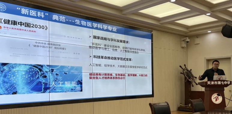 3月28日下午,公司招生宣传团队前往天津市第七中学,杨明教授针对当前AI领域的新发展,与传统医学学科相结合的新方向开展宣讲,并对公司生物医学科学专业的培养模式,就业方向等进行了着重介绍,现场座无虚席、气氛热烈。