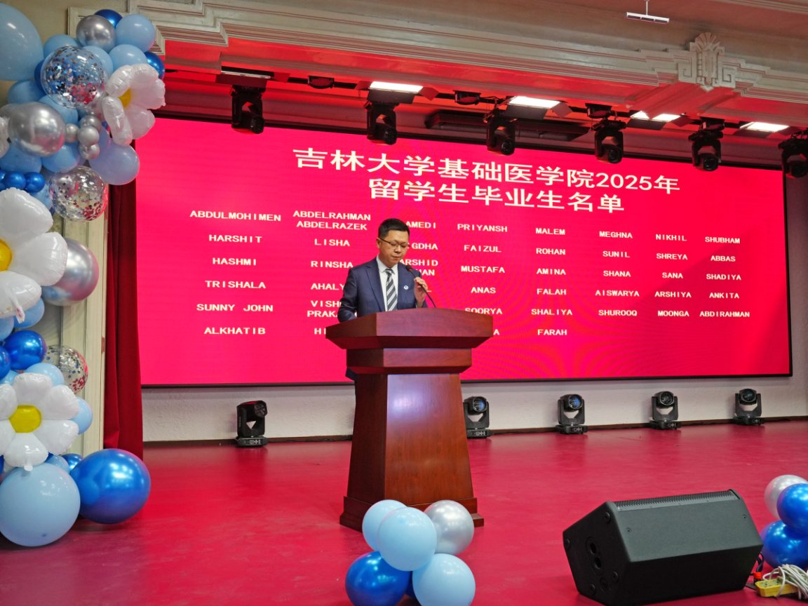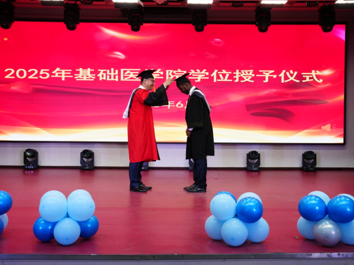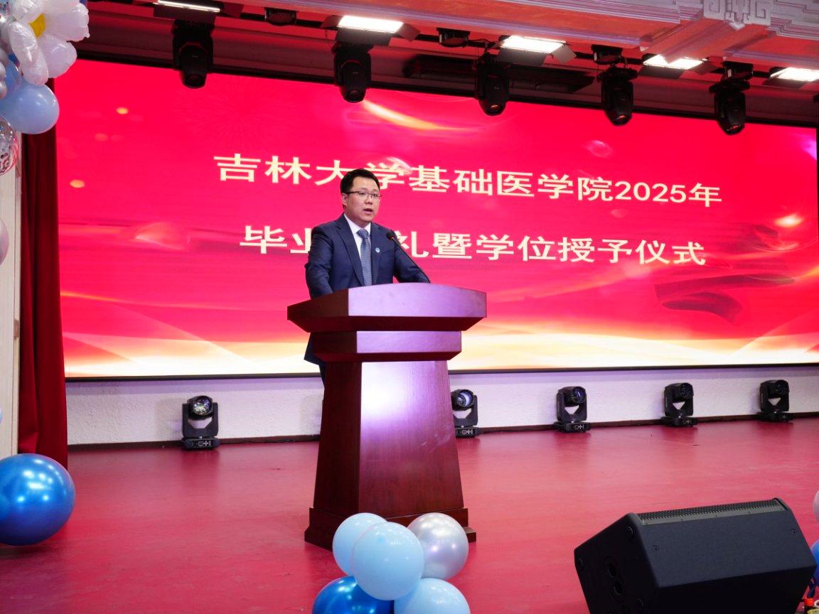 研究生毕业生代表郑皓宇发言。基础医学,是守护人类健康最前沿的堡垒,感谢公司所赋予我们的深入骨髓的医学情怀 —— 对生命的尊重,对医学真理的追求,对守护健康的责任。毕业学子将带上在这里淬炼出的品格与力量,带上那份对科学的好奇、对生命的敬畏、对责任的担当,勇敢地奔赴各自的星辰大海。