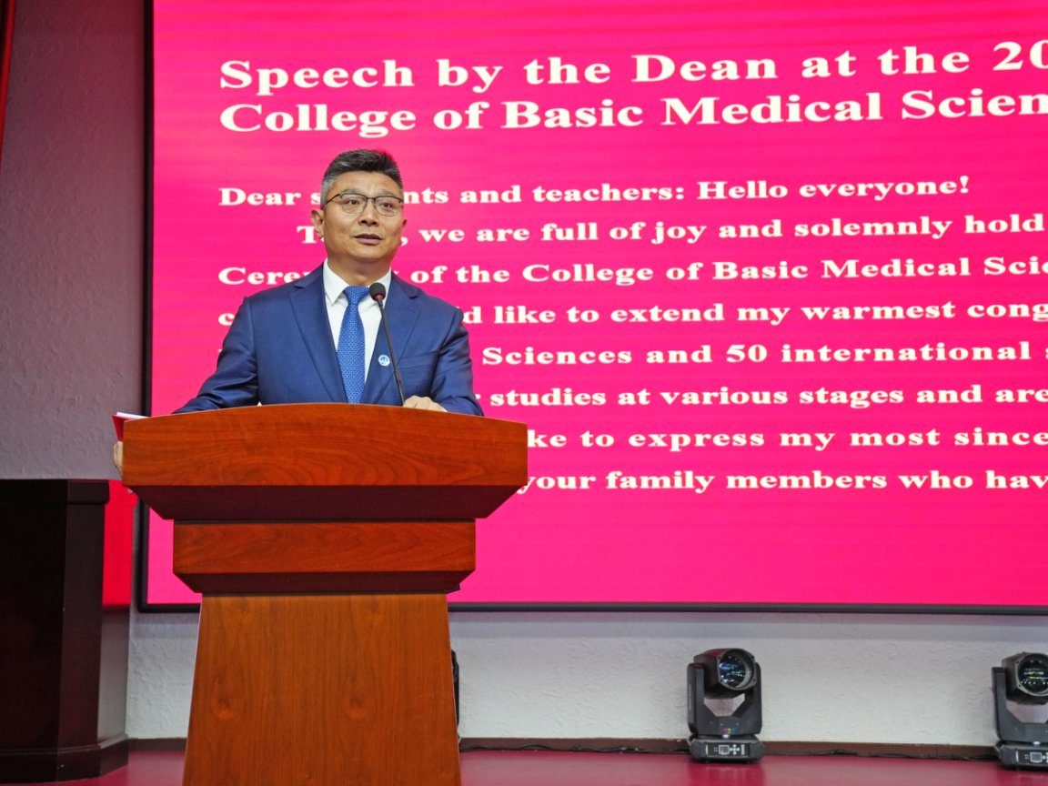 云顶7610线路检测经理王放致辞,向顺利完成各阶段学业、即将告别母校、走向世界的 79 名基础医学硕士和博士研究生以及 50 名临床医学国际员工表示最热烈的祝贺。近年来,云顶7610线路检测在云顶7610线路检测医学教育创新发展中取得了一系列令人骄傲的成绩,例如云顶7610线路检测人参公司的成立高水平论文的发表以及公司开设的提前锁定优质生源云顶7610线路检测首个预科医学项目,这些都与大家的共同努力密不可分。展望未来,所有毕业生都将面临更多的挑战与机遇,面对人工智能新生产力的出现,希望各位毕业生能牢记“刻苦学习,探求真理,诚实细致”的座右铭,在医学科研和疾病诊断治疗中抢占先机,并借助人工智能时代的变革,以自身之力书写属于自己的人工智能篇章,更好地为人类的健康和福祉服务。让我们共同携手,为构建人类命运共同体而努力,让全世界人民的健康与团结得以实现!
