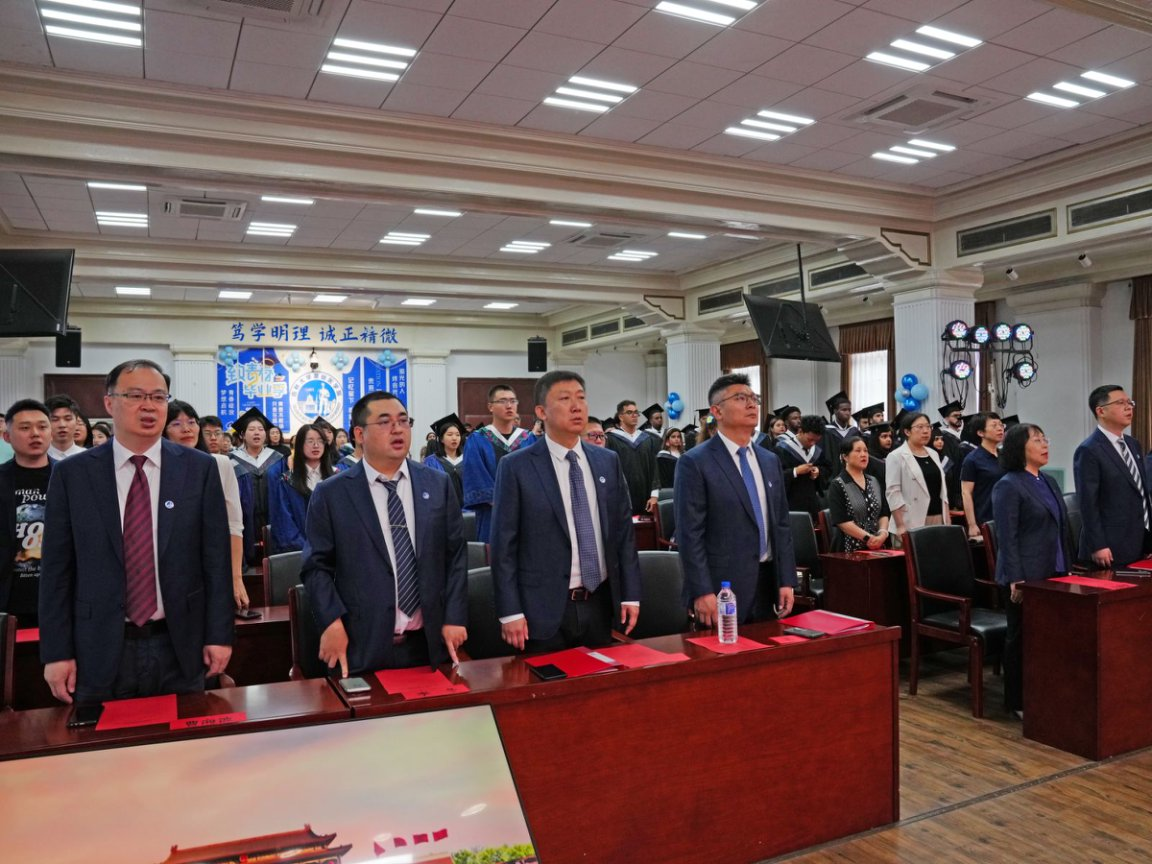 毕业典礼在高昂的国歌声中拉开序幕,由副经理何侃宣读职工毕业生名单。