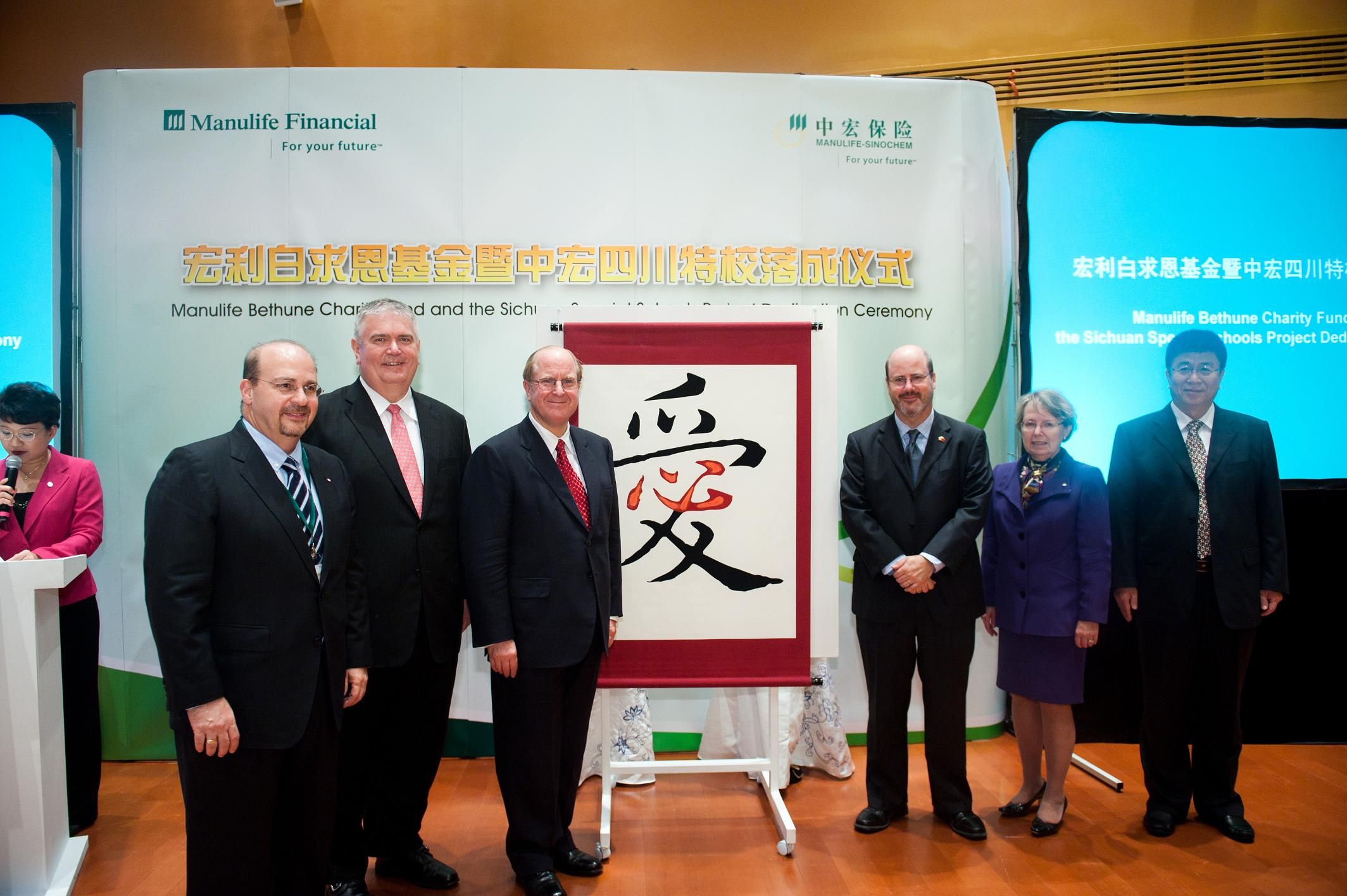 10月14日16时,“宏利白求恩基金暨中宏四川特校落成仪式”在上海世博会加拿大馆召开。云顶7610线路检测副董事长王冠军、白求恩医公司党委书记屈英和等出席了仪式。仪式上,副董事长王冠军与加拿大大使馆公使南杰瑞、宏利金融董事长Ms.Gail Cook-bennett、宏利金融总裁兼首席执行官邓广能等进行了亲切的交流,并共同书写中国字“爱”,标志着“宏利白求恩基金”的成立。