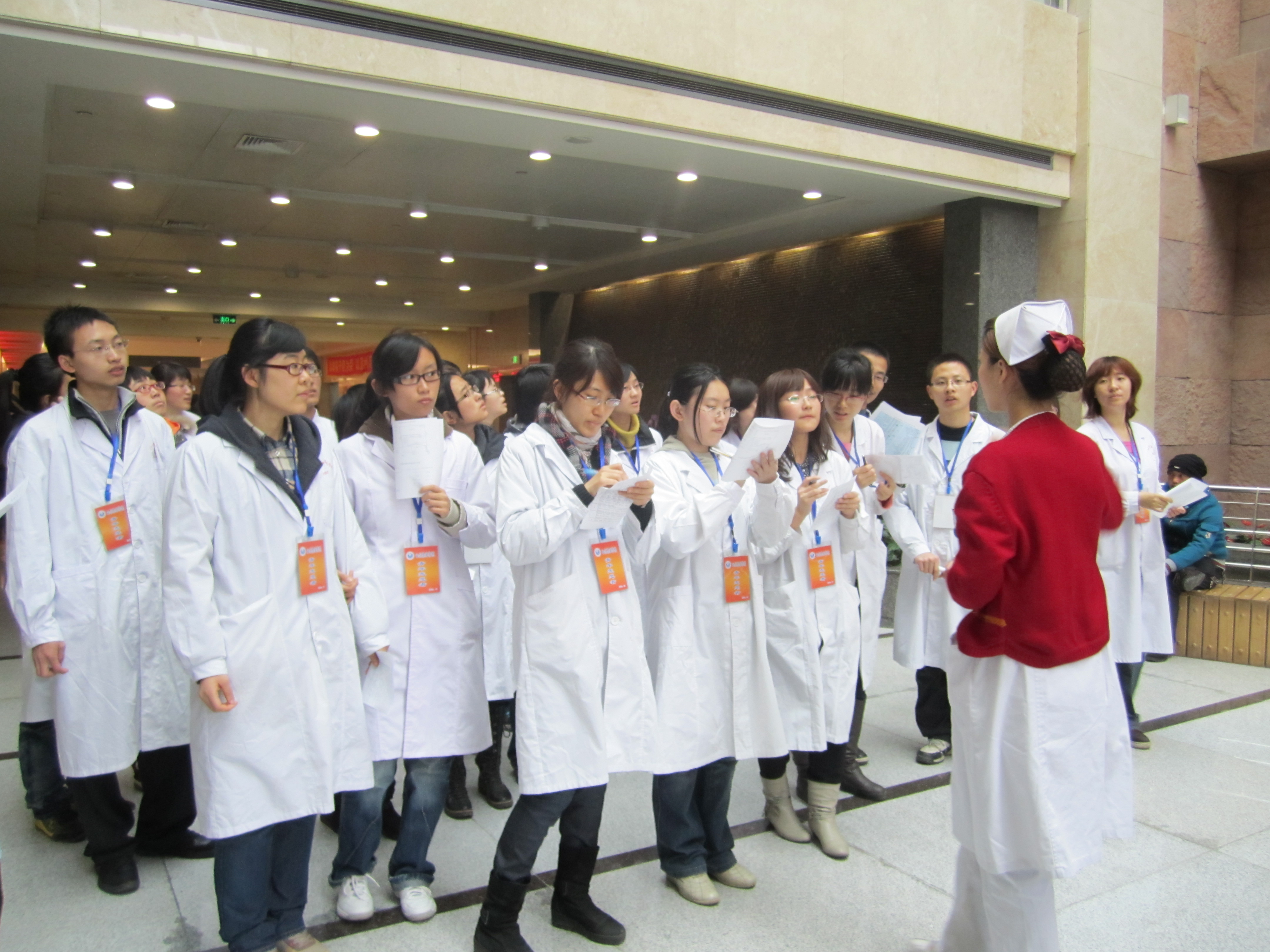 在接受了岗前培训后,志愿者分别走上各自的岗位开始了短暂的导诊和分诊工作——为患者指路、解答挂号方面的疑问、帮患者量血压等,志愿者们不但把在课堂上学到的知识充分的应用到了实践中,大部分志愿者还在医院工作人员的细致讲解下,学会了如何使用相关的医疗器械,为今后从事医疗事业积淀了一定的基础。