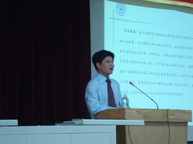 屈英和教授从医学社会学角度探讨了“关系就医”取向下医患互动关系形成、现状,他应用大量的调查数据和生动的实际例子分析了“关系就医”取向的成因,并探讨了医患互动的错位,医患双方对“医生权威”内涵的认识等问题。他指出,一名优秀的医务工作者需要做到两点:一是技术立根,全面发展;一是人文立本,大医情怀,并鼓励大家作为一名未来的医生,应在不断提高诊疗技术的同时,加强自身人文精神的培养。
