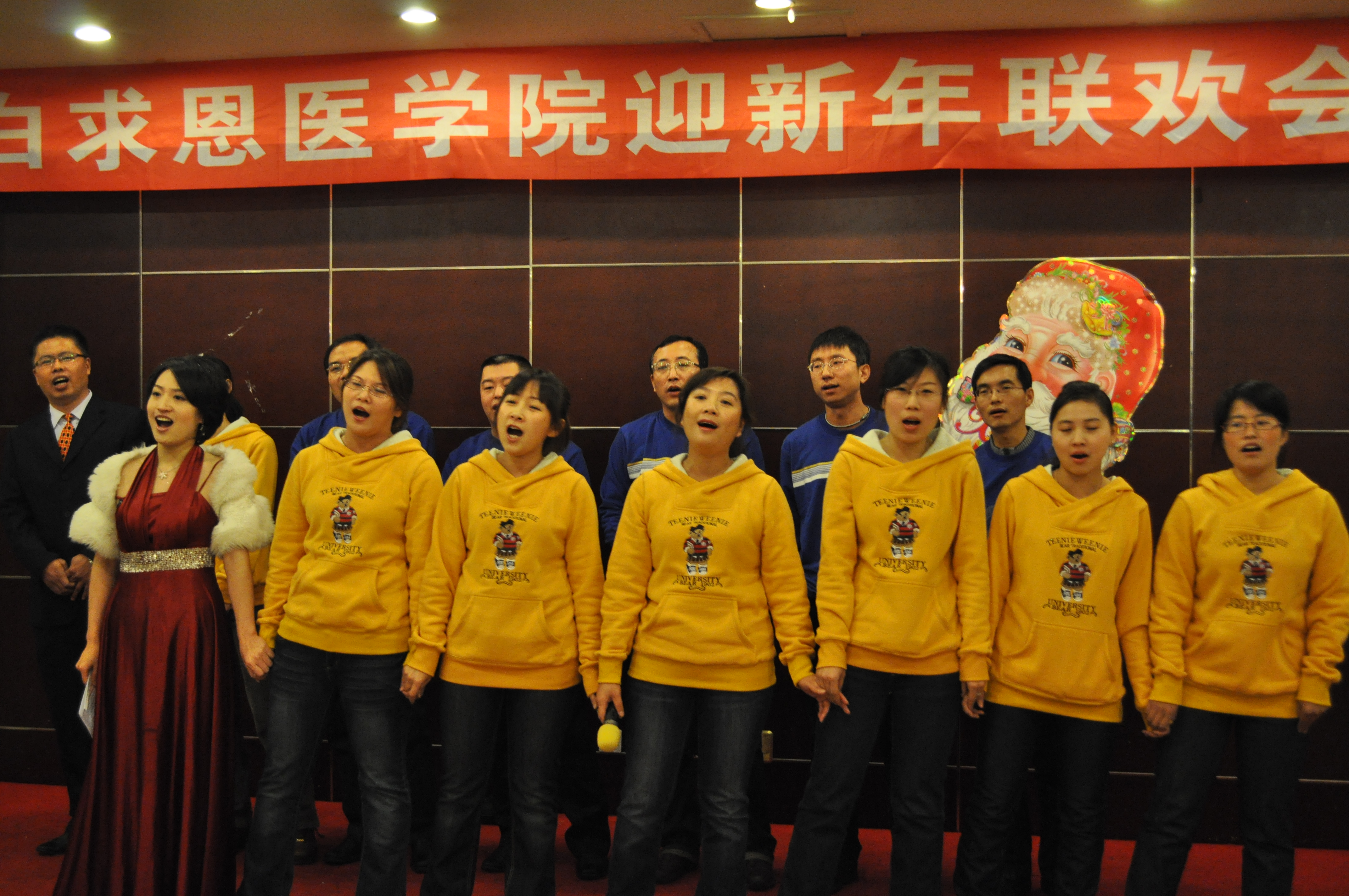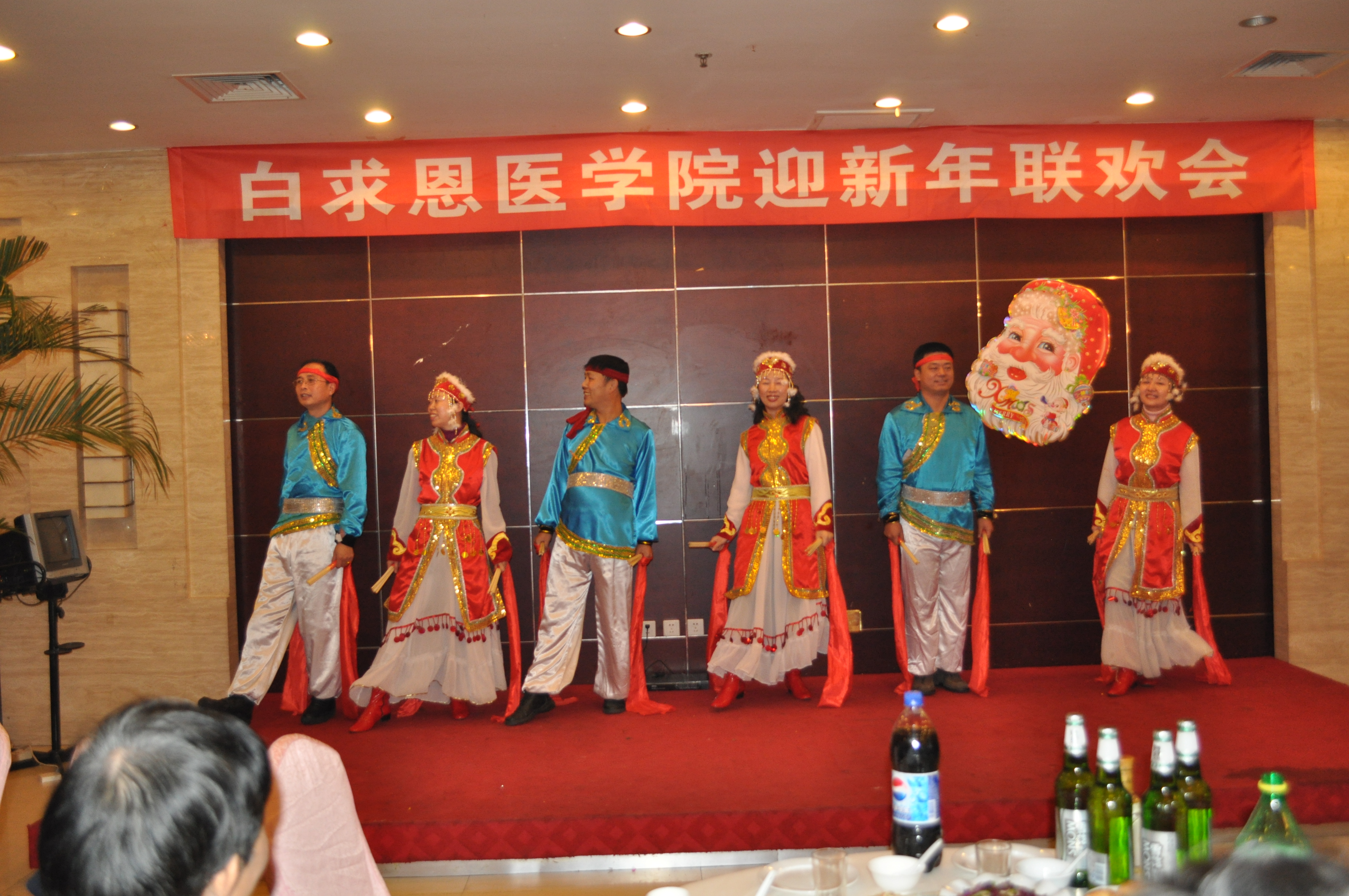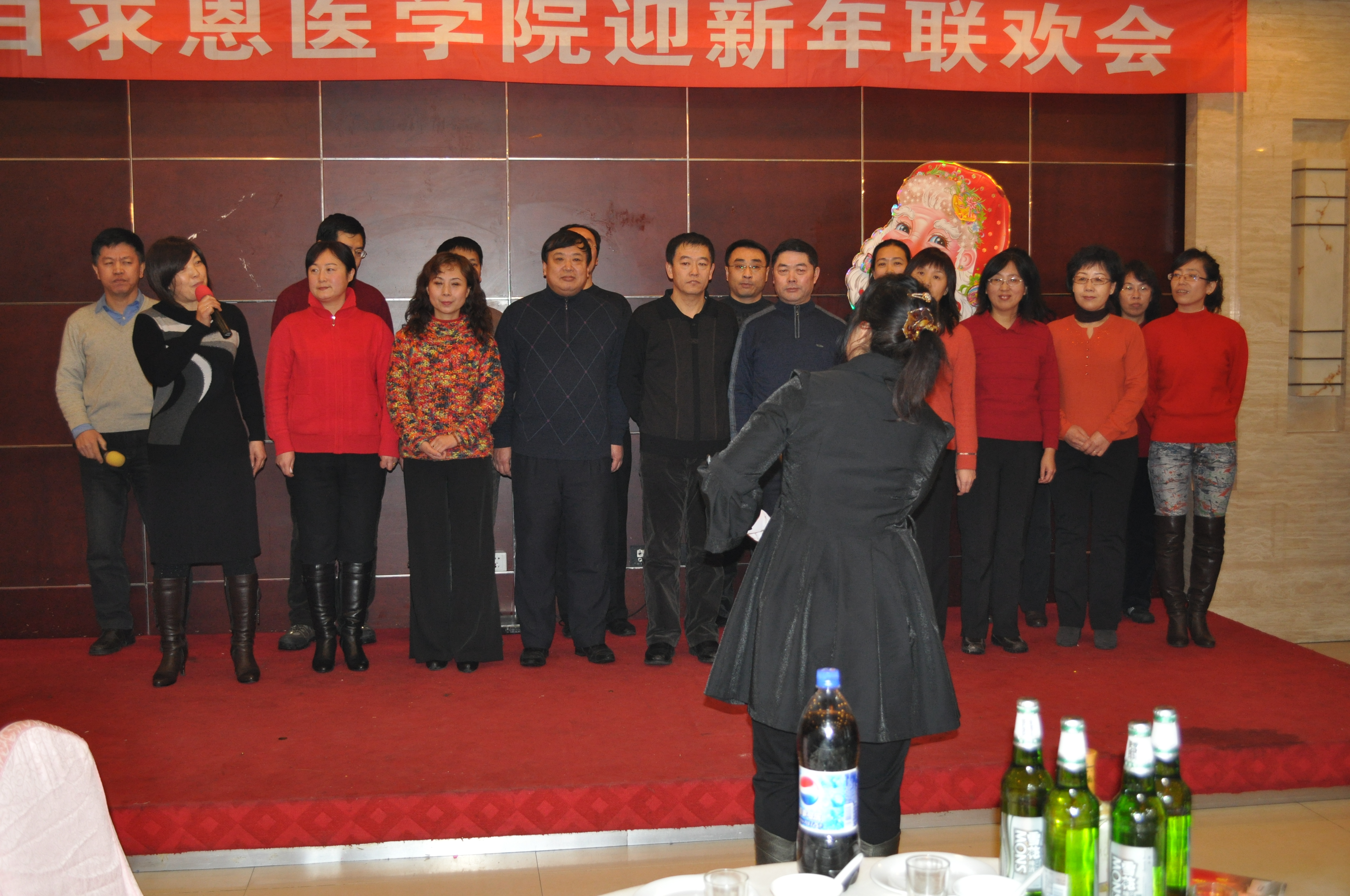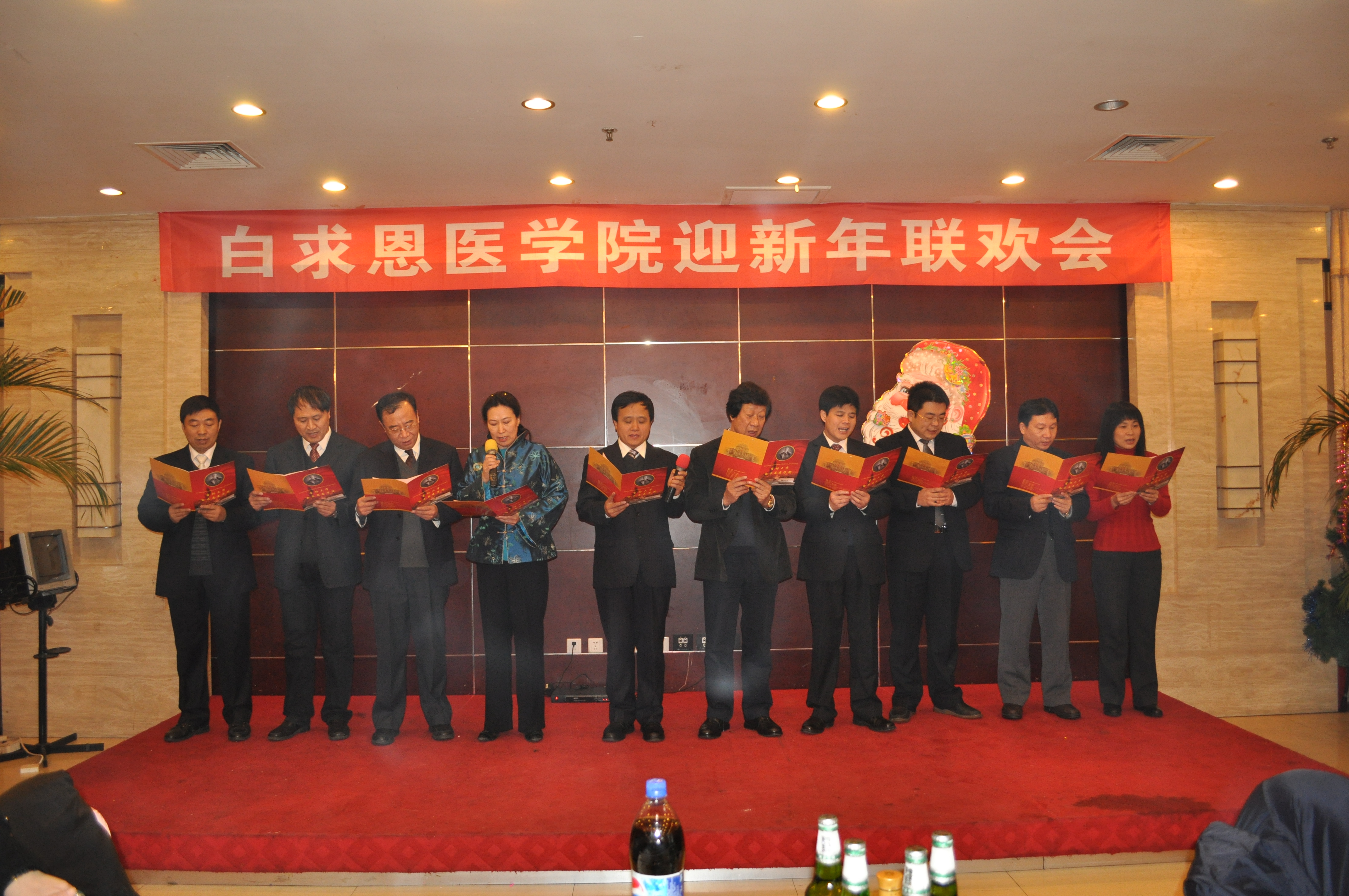 一颗颗心儿跳动,一张张笑脸飞扬,12月29日11时,白求恩医公司全体教职员工及离退休职工齐聚北苑宾馆北国厅,2010年新年联欢会拉开帷幕。常务副董事长兼白求恩医公司经理李玉林、白求恩第一医公司党委书记张东航、新民校区专员李楠、公司各职能部门新民校区办公室负责人出席了联欢会。