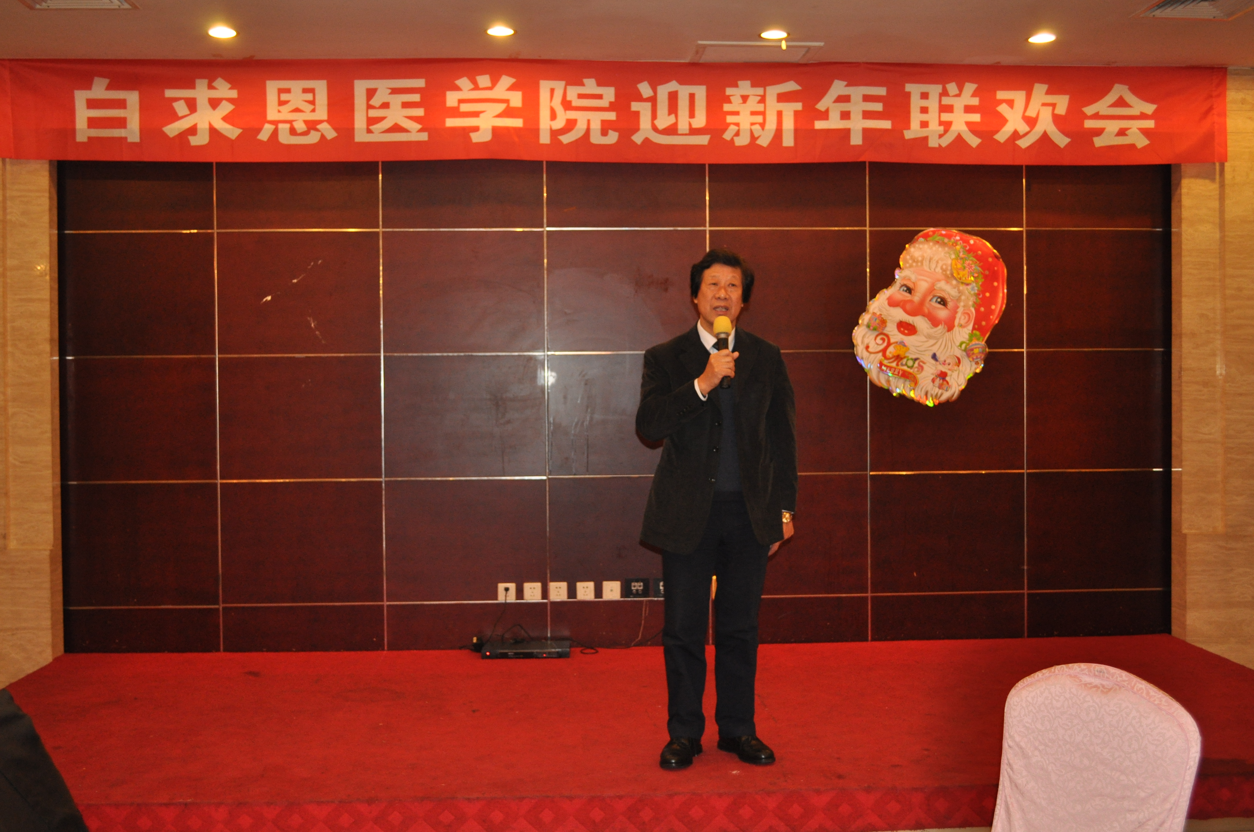 联欢会伊始,常务副董事长兼白求恩医公司经理李玉林发表了热情洋溢的讲话。首先,他代表公司对白求恩医公司一年来的工作给予了充分的肯定,代表公司向全体教职员工及参会人员致以了节日的问候和美好的祝愿。同时,对公司2009年全年的工作进行了全面的盘点。