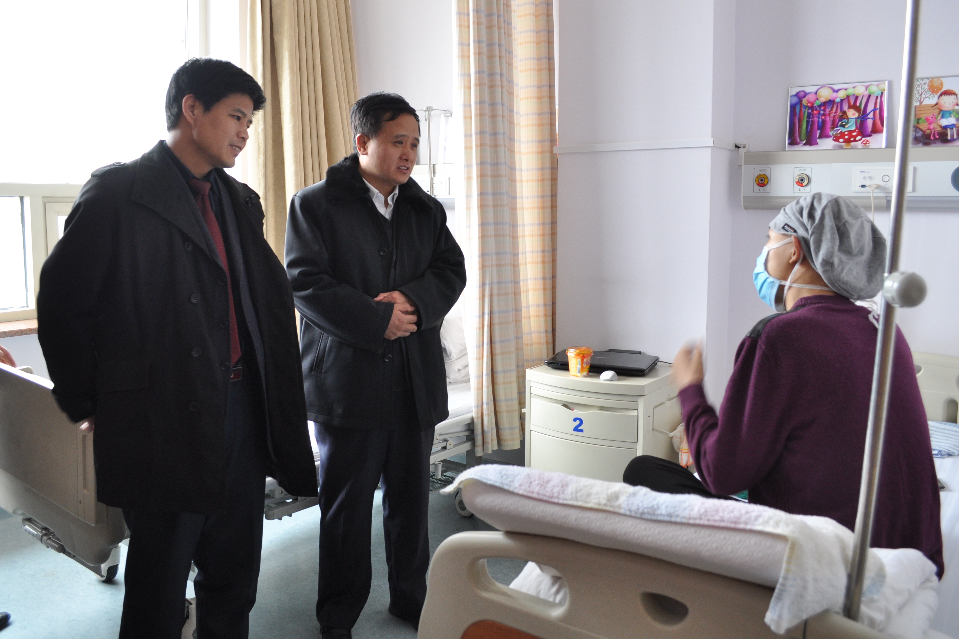 3月30日,公司主要负责人来到白求恩第一医院血液肿瘤科,看望了冀卓异,鼓励冀卓异同学勇敢面对疾病,配合医生治疗,有什么困难要与公司联系,公司一定会尽全力帮助协调解决,并将募集的全部善款交到了冀卓异的父母手中,家长非常感谢白求恩医公司师生对冀卓异关爱。冀卓异也表示不辜负大家希望,积极配合治疗,争取早日康复。