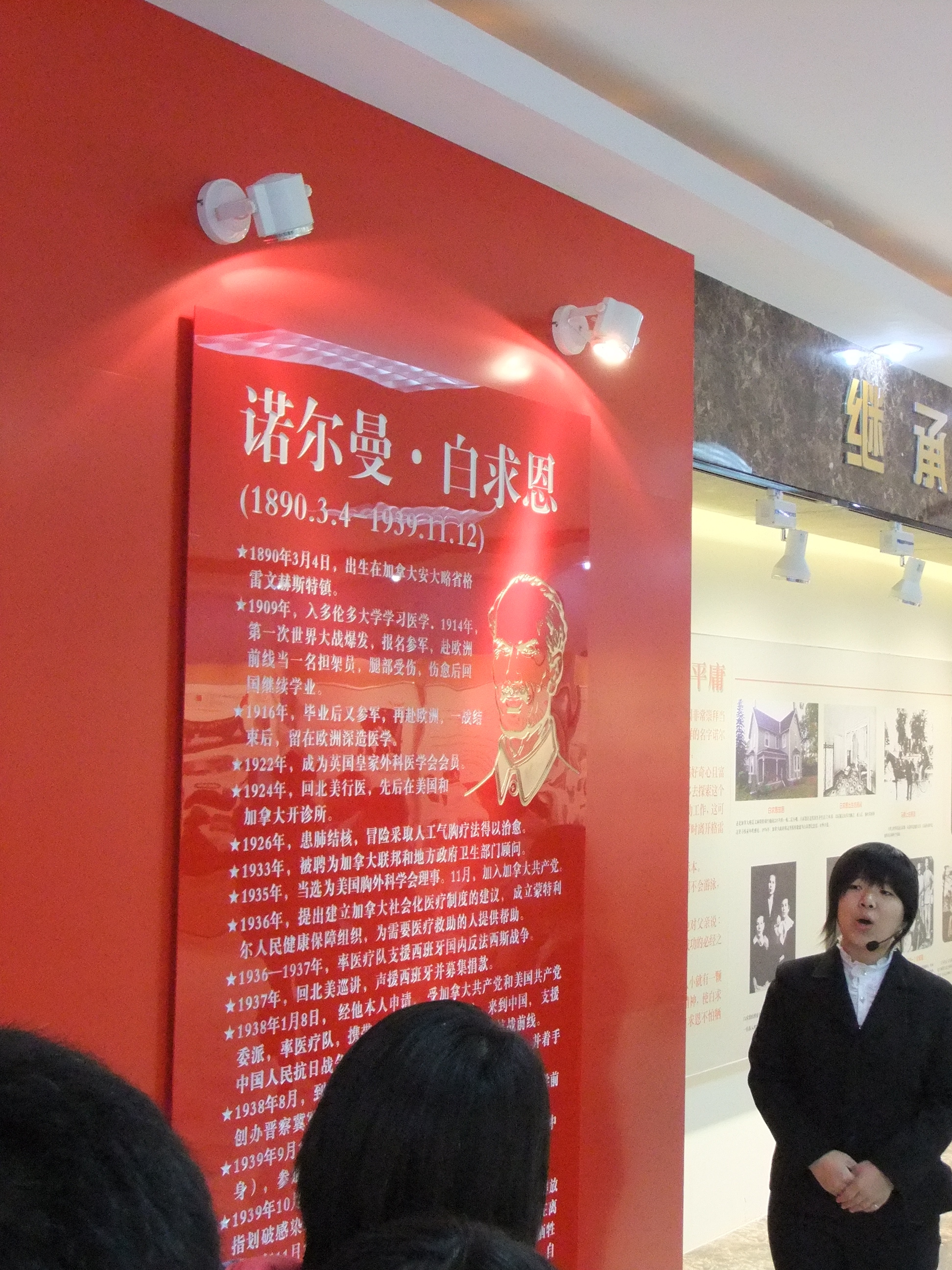 12时30分,员工工作办公室主任吴剑锋向同学们讲解了这次纪念活动的重要意义,要求同学认认真真参观,切身体会白求恩精神的真正内涵,以实际行动在将来的学习、生活、工作当中践行白求恩精神,传承白求恩精神,弘扬白求恩精神。