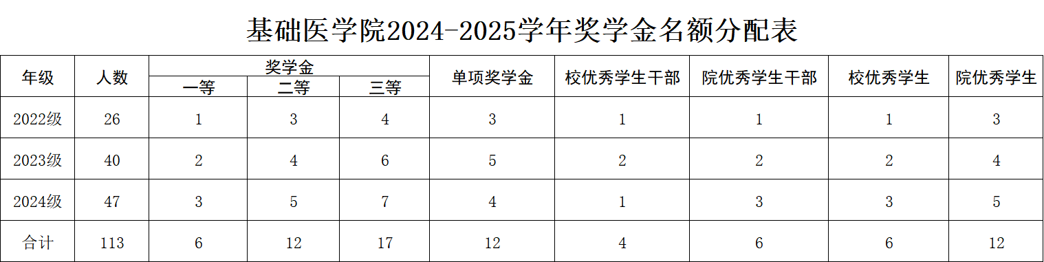 一、2024-2025学年奖学金、优秀员工和优秀员工干部评选各年级分配名额