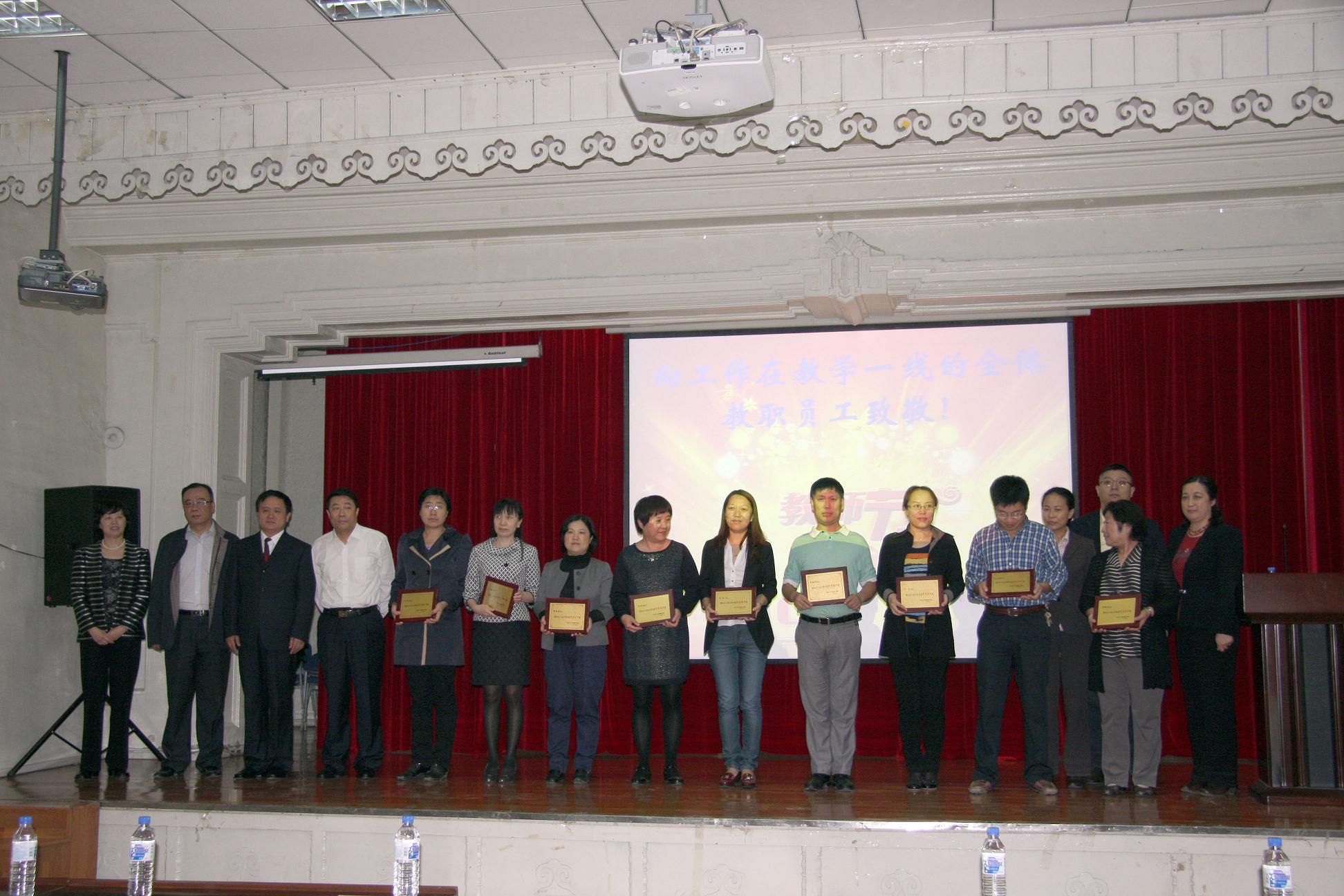 表彰会上,副经理陈霞、副经理陈立分别宣读了2012-2013年度优秀教师、科研工作先进个人表彰决定。病理学系王琳教授代表获奖教师发表感言,感谢公司为教师们提供成长发展空间,并倡议全体教师认真履行职责,圆满高效地完成教学任务。研究生肖冬同学代表全体员工恭祝教师节日快乐,并献上诗朗诵《感恩的心》。