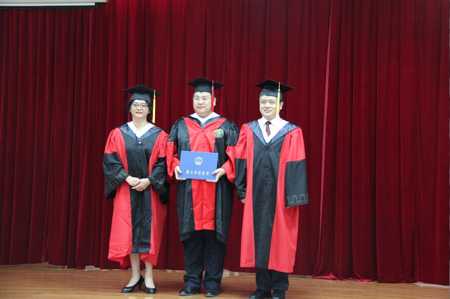 毕业典礼在庄严的国歌中开始。首先,副经理李一雷宣读了获得学位的毕业生名单。在欢快的乐曲中,孙连坤、王丽颖一起为毕业生授予学位、颁发学位证书并合影留念。