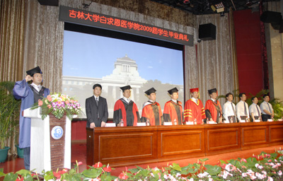 最后,白求恩医公司2009届毕业生进行了简单的重温医员工誓词仪式,毕业典礼在校歌中圆满落幕。