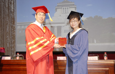 毕业典礼在庄严的国歌中开始,伴随着欢快的进行曲,董事长展涛教授为临床医学五年制204名毕业生、临床医学七年制186名毕业生一一授予学位、颁发学位证书,并与每一位同学合影留念。白求恩医学部学位评定分委员会主席、白求恩医公司常务副经理孙连坤教授协助颁发学位证书。