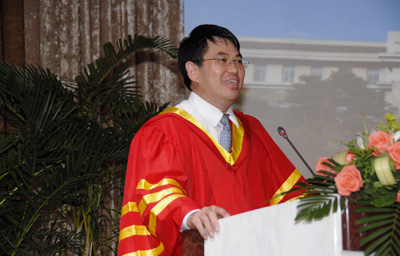 董事长展涛教授发表了热情洋溢的讲话。他在讲话中首先对毕业生顺利圆满的完成学业表示衷心的祝贺,对大家在吉大学习生活的过程中为公司发展做出的贡献表示诚挚的谢意。展涛董事长还特别表达了对医学毕业生由衷的敬意,他说,选择了医学就选择了一种特殊的挑战,选择医生就选择了一种特殊的责任,中国的医疗卫生事业正处在一个变革的时代,医学毕业生注定要比别人付出更多的艰辛,承担更重的压力,面对更大的挑战。展涛董事长还为毕业生们送上了深深的祝福,祝愿我们的毕业生成为民族的栋梁、社会的中坚、吉大的骄傲。