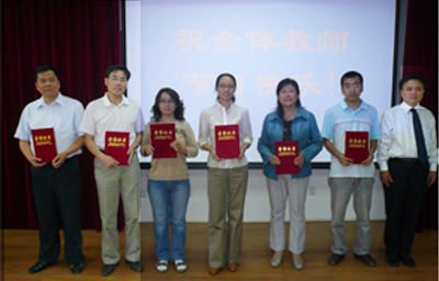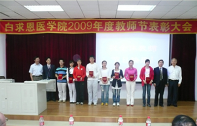 在第25个教师节来临之际,白求恩医公司于9月10日下午在新民校区第二教学楼2402教室举行2009年教师节表彰大会。白求恩医公司党委书记屈英和、常务副经理孙连坤、白求恩医学部副学部长侯治富、教务处副处长金祥雷、吴运涛、第一临床公司副经理牛俊奇、白求恩医公司领导、部分外籍专家、教师代表和员工代表参加了大会。大会由白求恩医公司副经理程丕显主持。