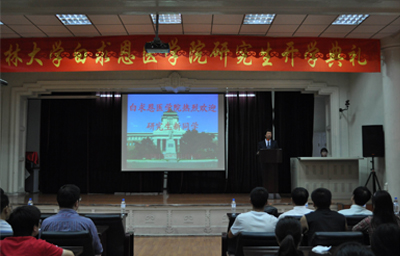 开学典礼在庄严的国歌中开始,常务副董事长兼白求恩医公司经理李玉林发表讲话。首先,他代表公司、公司感谢2009级研究生能在众多医公司校中选择来公司学习,同时,对他们表示祝贺和欢迎。随后,他回顾了公司七十年来的发展轨迹和优秀员工在医学领域中取得的骄人成绩,并对全体研究生提出了殷切希望。希望同学们大力弘扬白求恩精神,在学习科研工作中,要学会做人、做事,要经得起寂寞的考验,经得起失败的考验,经得起同行评价的考验,争取创造医学新的辉煌。