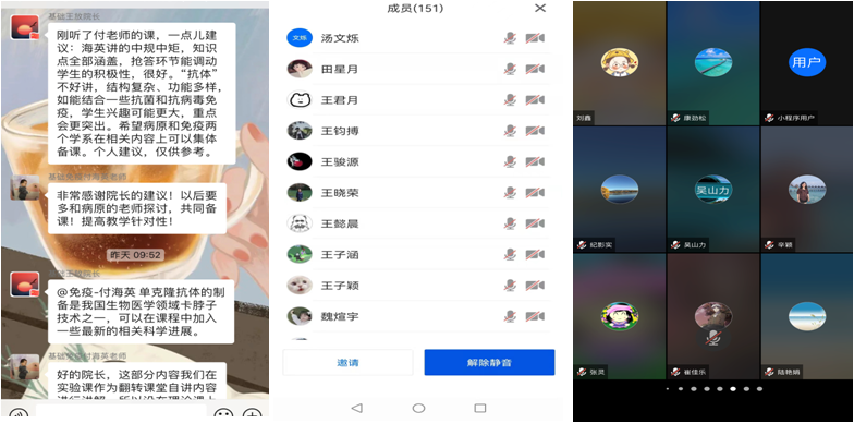 自3月8日线上教学开始,通过与学系主任、教学秘书、任课教师的电话沟通、线上问卷调查,以及督导的听课反馈,公司汇总了教师对于线上教学的需求与建议,并针对线上教学平台如何的熟练的综合运用,线上教学的课堂设计等共性问题,于3月17日、3月21日和3月22日,分别在云端组织了理论课、实习课线上教学观摩和线上教学交流培训活动,让老师们体会了利用腾讯会议+同步课堂+虚拟资源三平台的有机结合,及设计抢答、问答、员工展示等多项互动活动,打造的良好线上教学效果。此次观摩结合培训的教学活动,促进了基础医学线上教学从有序开展到高质量的提升。