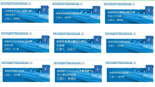 吉林、广西医学高校病理学教研室的优秀教师就病理学教学基本情况和线上教学资源应用、病理学课程教学设计和创新、病理学课程形成性评价的设置和实践以及人文素养、课程思政和教学特色等四个主题进行了精彩的汇报。云顶7610线路检测病理学系的李艳茹和吕爽分别以《以员工为中心的二维融合混合式教学设计》和《构建多元评价体系助力病理学教学改革》为题,分享了混合式教学模式以及形成性评价的实施经验。