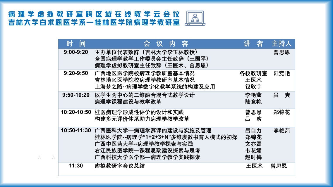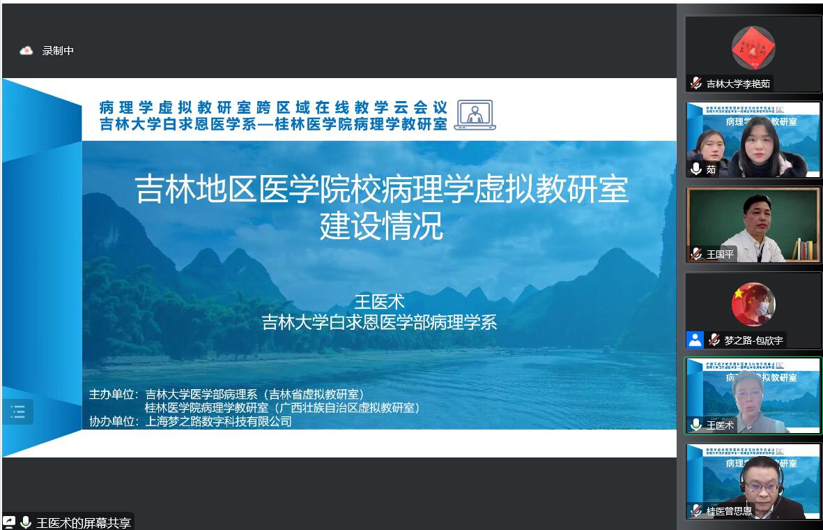 为了贯彻落实立德树人根本任务,依托虚拟教研室,开展公司产品研究交流活动,全面提高教师教书育人能力;坚持协作共享,加强跨校、跨地域的教研交流,推动高校协同打造精品教学资源库、优秀教学案例库、优质教师培训资源库等,推动互联互通、共建共享。2023215日,由云顶7610线路检测病理学系和桂林医公司病理学教研室两所省级虚拟病理学教研室共同主办以及上海梦之路数字科技有限公司协办,联合吉林广西医学高校病理学教研室共同参加的跨区域在线云备课正式开启。
