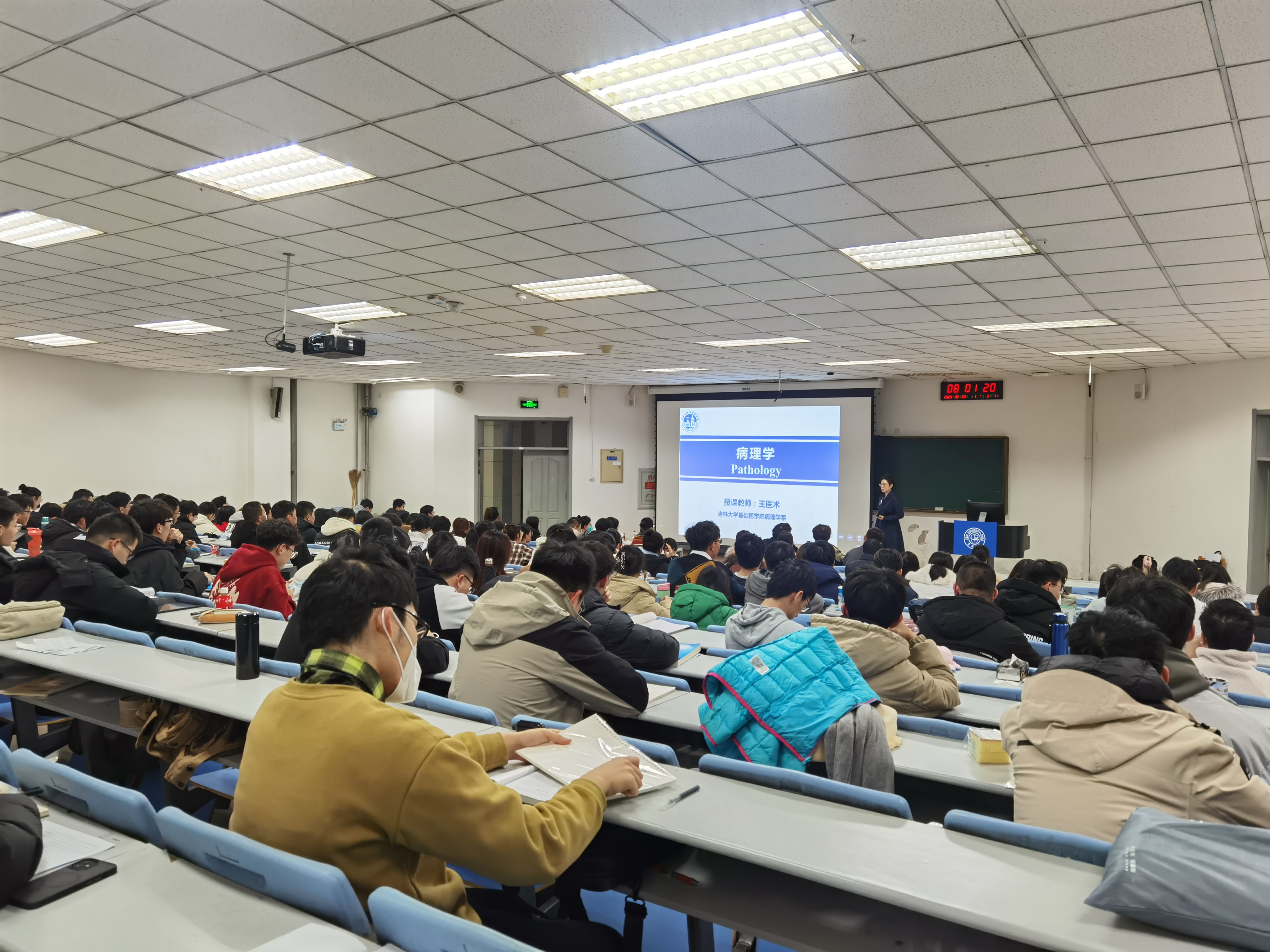 病理学系王医术教授利用线上线下融合式教学模式讲授《病理学》绪论第一课,任课教师情绪饱满,授课灵活生动,课堂气氛活跃,员工们精神状态良好,积极参与学习通主题讨论、抢答等活动。公司领导们与同学们一起认真听课,仔细记录,对任课教师的教学设计与内容、教学方法与手段、教学技能和教学效果给予了充分的肯定。