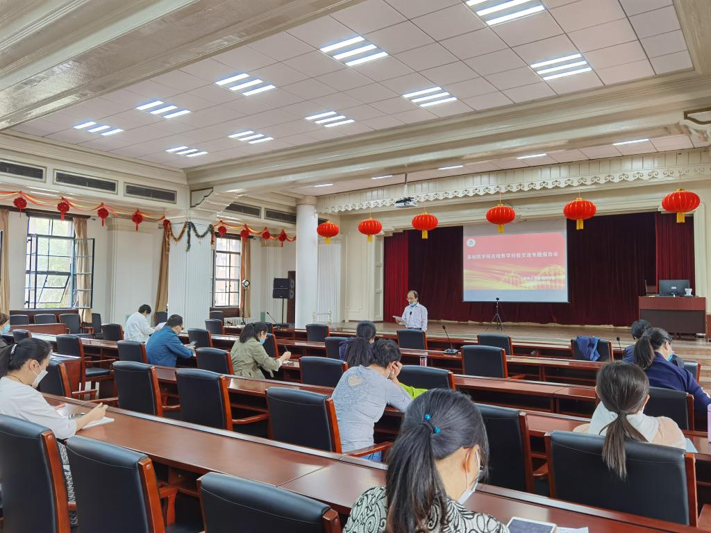 随后,二位教师结合在线教学开展情况,从课程定位、学情分析、在线教学形式、教学内容、教学效果与反馈等方面分享了在线教学经验,分析了教学过程中遇到的问题和采取的措施。病理学学系主任王医术教授分享了《病理学“三段式”线上教学模式的探索和策略》。病理学课程基于国家精品在线开放课程-人卫慕课《病理学》及吉大学堂在线《病理学》平台,采取“三段式”授课模式,即教师线上直播精讲、员工利用线上资源自主学习与测试、教师线上答疑、平台互动与总结,引导员工将基础知识运用于病理学知识的深化及案例的研判,培养员工的自主学习能力和临床思维。组织学与胚胎学学系主任刘佳梅教授分享了《同心协力,经“疫”求精》的线上组织学与胚胎学教学。融合线下教学的经验,在精心课程设计基础上,充分利用在线教学的优势,在保证知识传授、能力培养前提下,着力加强情感态度价值观教学内容,鼓励员工秉承医者仁心的家国情怀,努力增加职业道德感和社会责任感,传承白求恩精神。