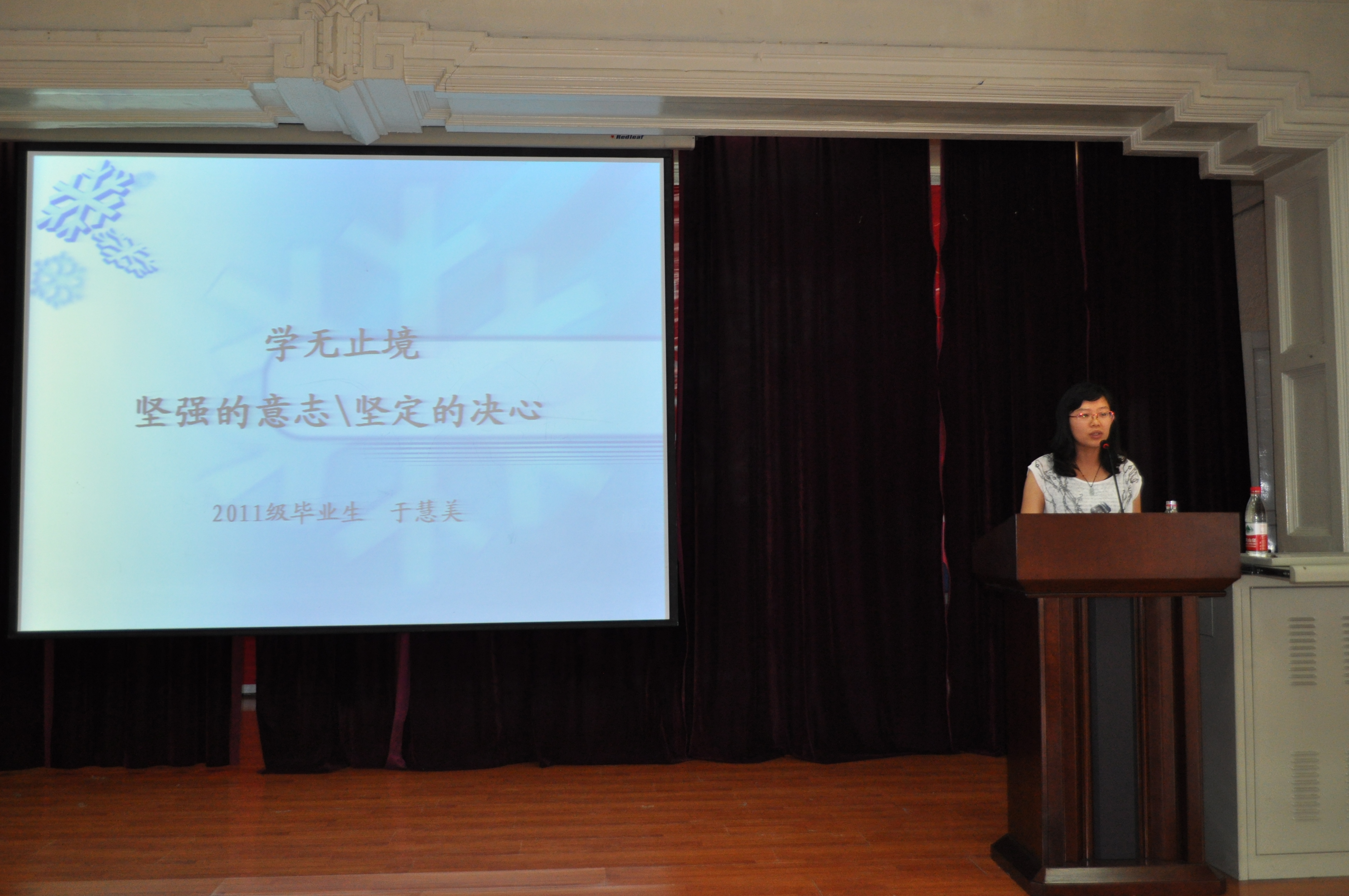 于慧美、徐慧、苏静分别以《学无止境》、《只有你想不到的,没有你做不到的》和《如果当初我知道……》为题,向新生传授了自己宝贵的学习、生活经验。他们结合各自的学术科研以及出国留学的经历,从微观到宏观,从如何进入实验室、如何做好实验、如何发表高水平的科研文章,到如何确定自己的学术目标、人生目标等方面,为研究生做了精彩、生动的演讲,所讲内容实用性较强,并具有励志和指导意义。